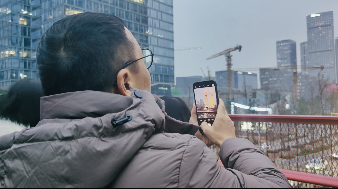 “不光桥上风光迷人,桥下的万家灯光也让人印象深刻,一路走来,满眼都是绚丽多彩的城市夜景,现代又有活力,很巴适!住在这里的人生活一定很安逸。”来自北京的作家陈巨飞期待着接下来能在成都有更多精彩的探索。
