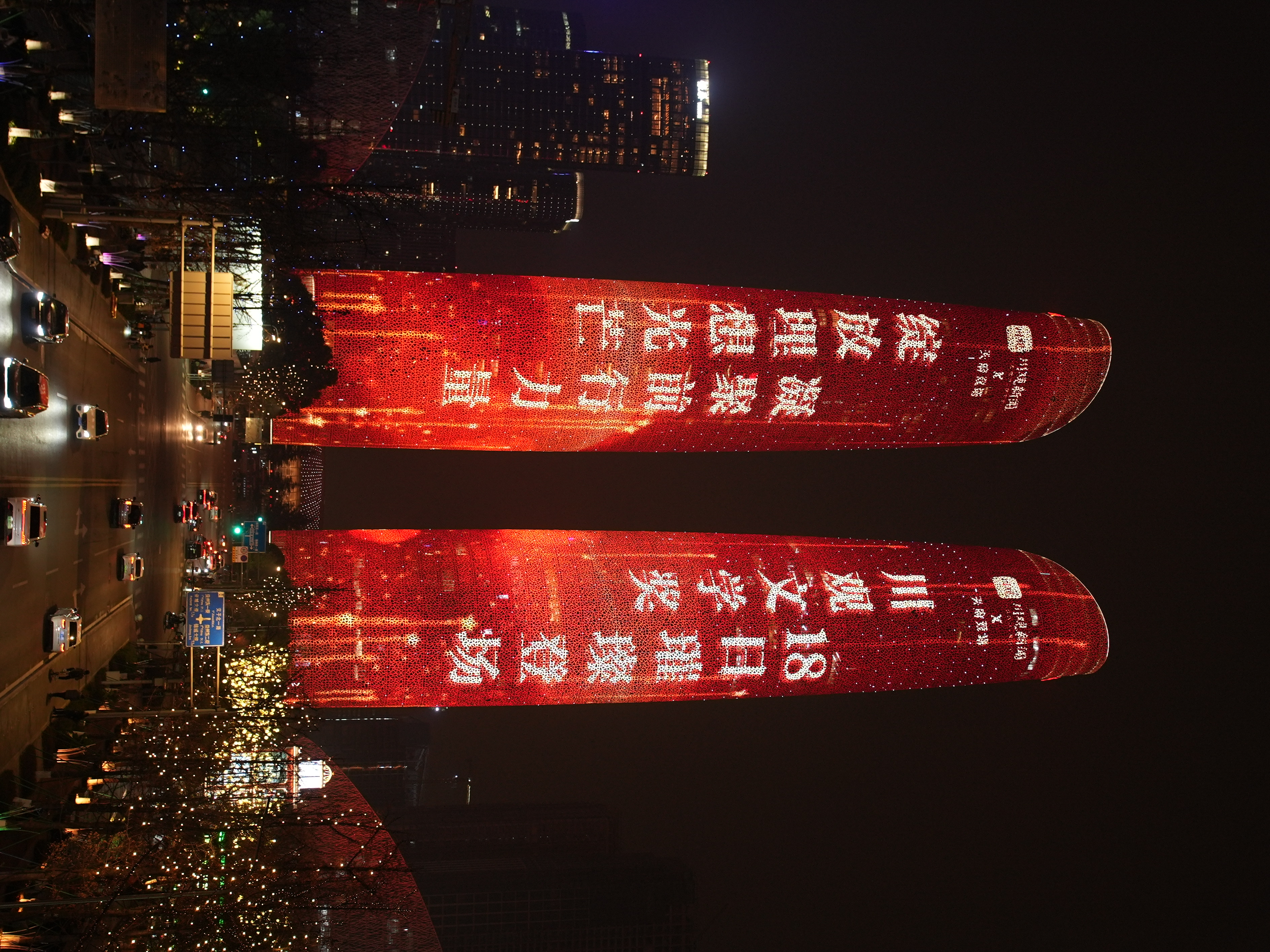 “立时代潮头,发文学先声”“绽放理想光芒,凝聚前行力量”“川观文学奖18日璀璨登场”……1月17日晚,冬日的蓉城华灯初上,位于成都高新区的天府双塔点亮灯光,向文学、向作家、向川观文学奖致意。