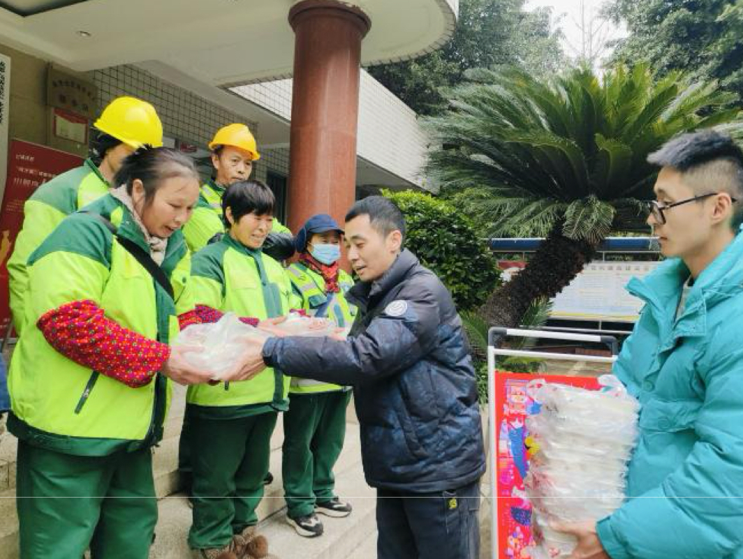 随后,社区工作人员将居民们包好的饺子送给辖区的环卫工人及现场的其他居民朋友们,让环卫工人们感受到尊重和关怀的同时,也让更多的居民参与到了节日的喜庆氛围中。大家围坐在一起,品尝着自己包的饺子,共庆团圆年。