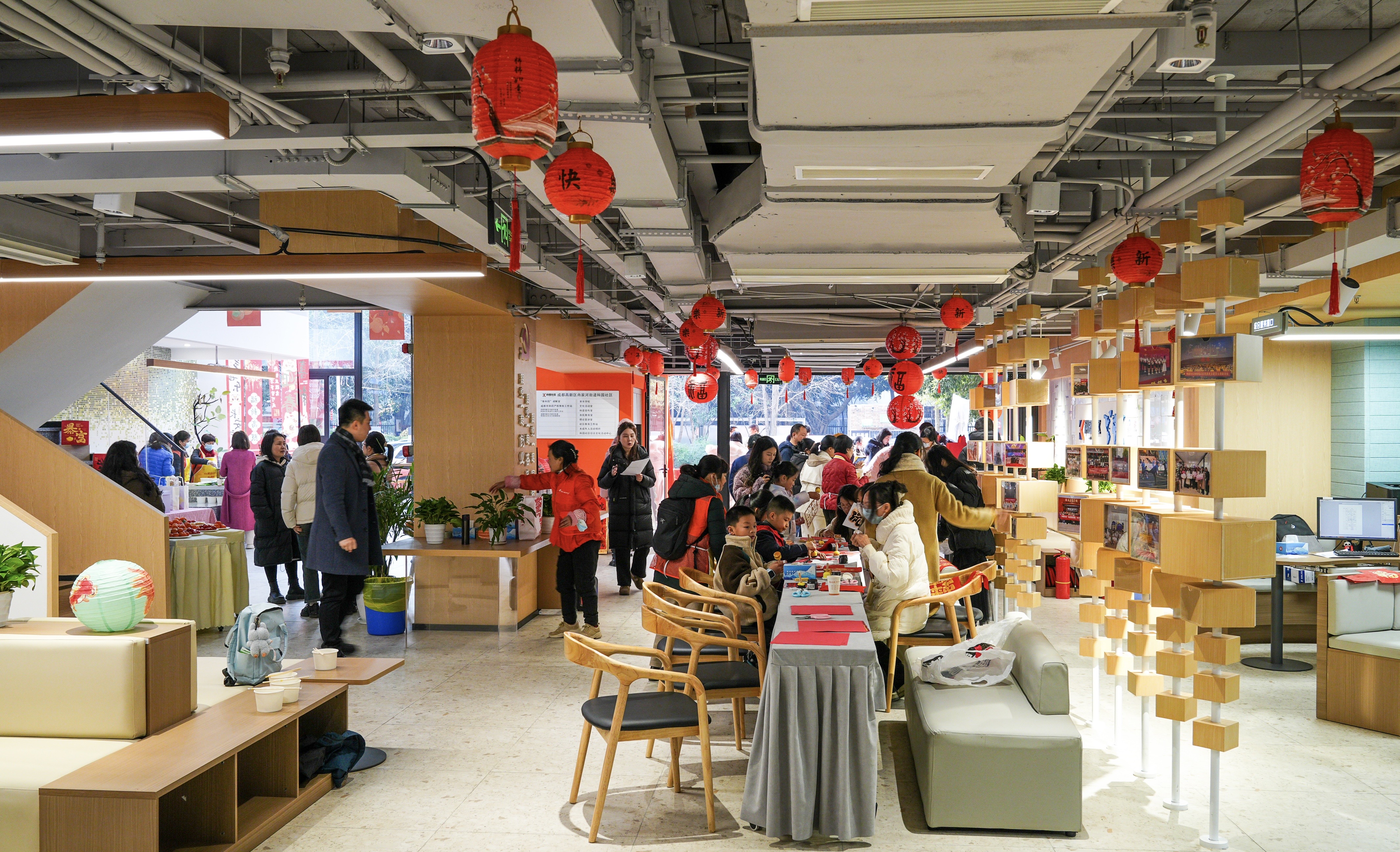 写福字、剪窗花、吃汤圆、切蛋糕……1月20日,焕然一新的科园社区党群服务中心里热闹非凡,一场别样的过年仪式吸引了不少居民。