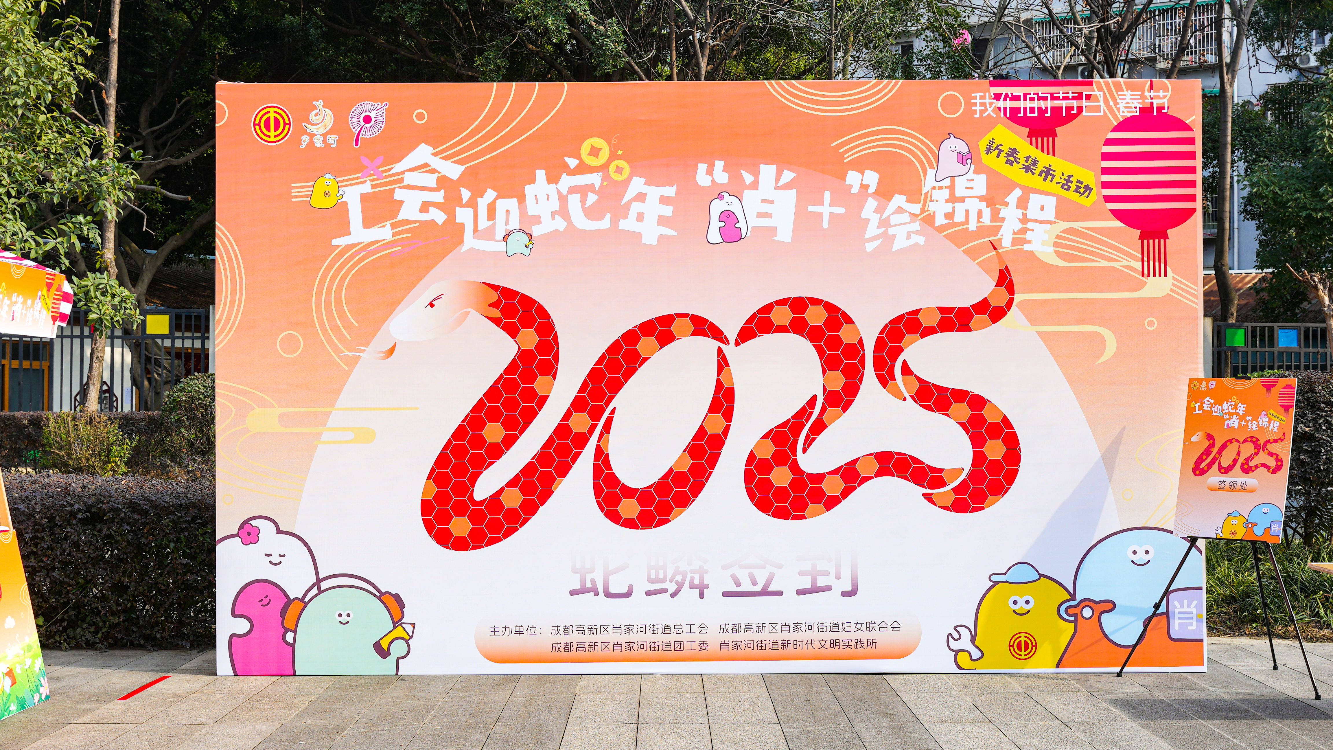 以生肖蛇为设计灵感的签到墙则成为了本次活动的另一大亮点。职工们纷纷在“鳞片”上签下名字,最终汇聚成醒目的“2025”字样,寓意携手共赴充满希望的新一年。