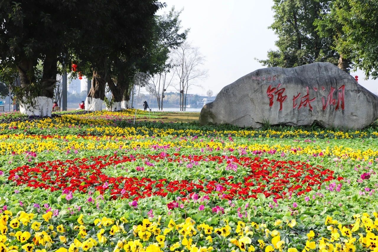 除了红灯笼外,在成都高新区锦城公园、桂溪生态公园等点位还有新春主题花卉氛围“盛装”迎新年。花卉氛围以暖色系为主,点缀蓝紫色系,通过花卉色彩和形态的优化搭配,呈现层次分明、花团锦簇的视觉效果。