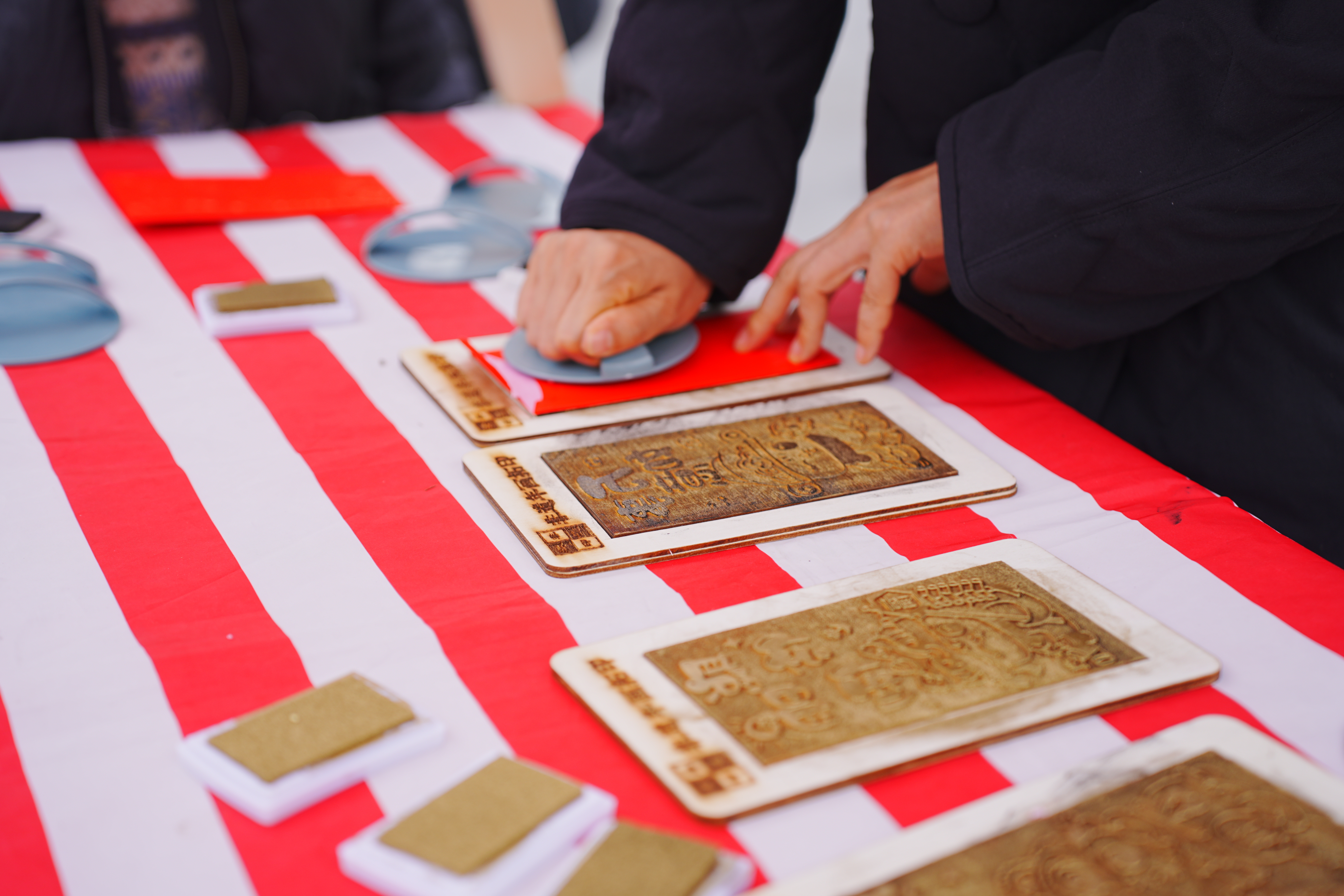 活动现场设置了春联写作体验、非遗剪纸体验、美食体验、文创作品展览等环节。在指导老师的带领下,小朋友和家长一起剪纸、写春联、制作拓印红包,现场其乐融融。大家在感受新春热闹氛围的同时,也尽情体验悠久的中华传统文化。
