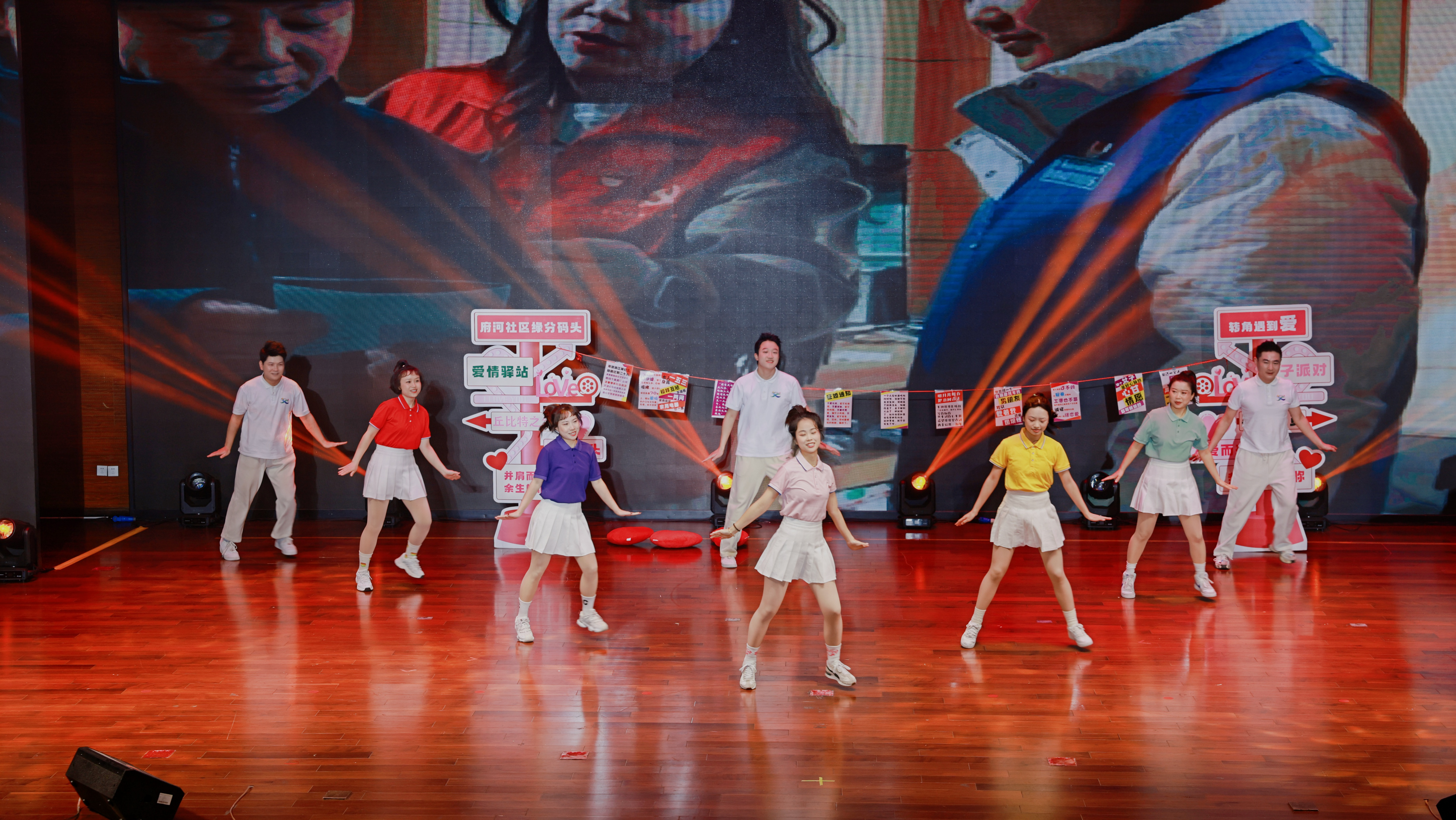 第三篇章“颂歌展宏图·望中和未来”将演出推向高潮。中和社区卫生服务中心带来的情景朗诵《双向奔赴 廉洁医路》,以医护人员的日常工作为背景,展现他们在救死扶伤道路上的坚守与担当。中和第三幼儿园的古典舞《上铃鼓》中,孩子们手持铃鼓,在悠扬的音乐中翩翩起舞。成都高新区康和幼儿园的小品《捂紧钱袋子》则以幽默诙谐的方式,向观众普及了防范金融诈骗的相关知识。中和第十一幼儿园的当代舞《溯跃》,以其充满力量感和创新精神的舞蹈动作,表达了对未来的勇敢探索与不懈追求。文艺汇演在五根松社区的歌舞《筑梦时代》中圆满结束。