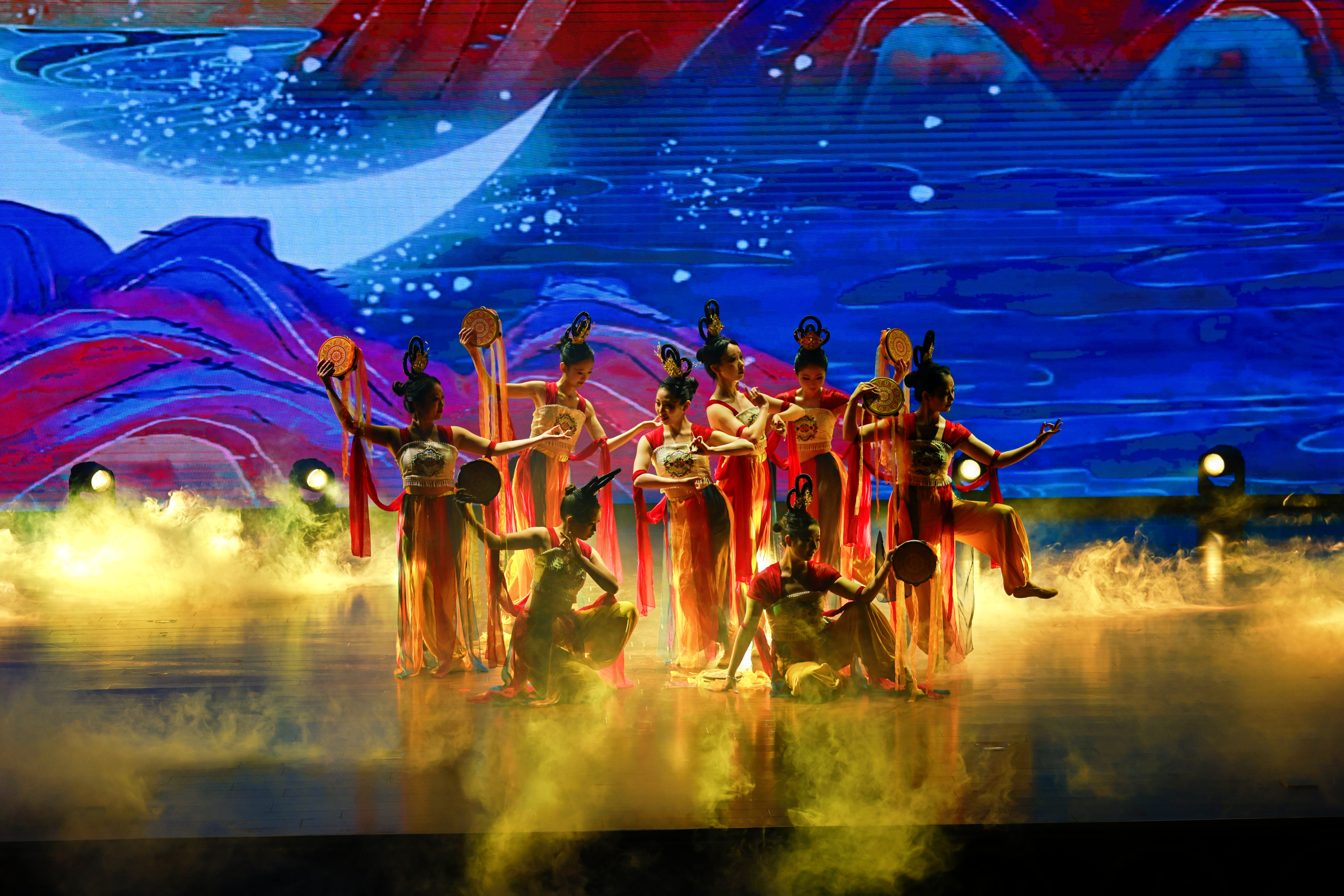 第二篇章“雅音迎春到·贺中和风貌”,节目风格变得多元而时尚。七里社区的街舞表演《炫酷青春》让人眼前一亮。随后,成都高新区蒙新小学的孩子们身穿汉唐服饰,在汉唐舞《执镜俑》中模仿执镜俑的姿态翩翩起舞。府河社区的情景剧《府河那些事》以贴近生活的真实故事为蓝本,生动再现社区居民的日常生活场景。《韵动山河・民族舞蹈串烧》由中和街道舞蹈队、四川慧融优培教育咨询有限公司及中和老年大学艺术团舞蹈队联袂献演,三支舞蹈风格各异,展现了中和街道文化的多元与包容。