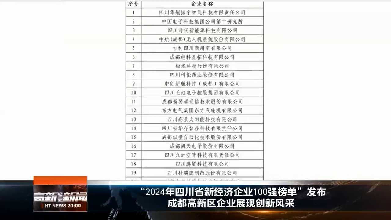 近日,四川省工业和信息化研究院研究发布了“2024年四川省新经济企业100强榜单”。在此次榜单中,成都高新区的企业表现尤为亮眼,不乏在人工智能、大数据、云计算等领域具有创新实力的企业。