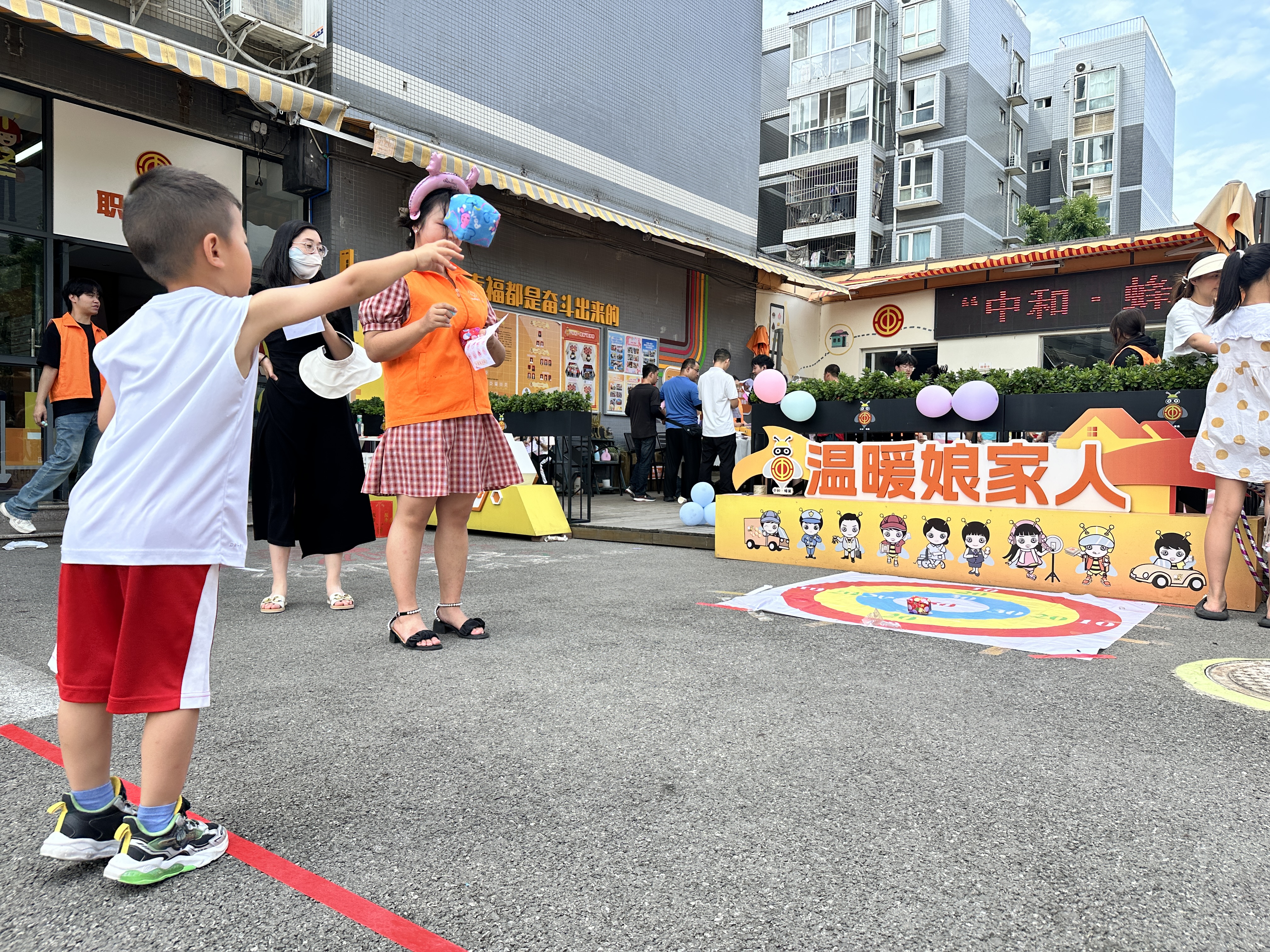 活动现场,有的家庭围坐在一起分享零食,有的在“职工之家”背景板前合影留念,“温暖娘家人”的标语与孩子们的笑脸相映成趣,处处洋溢着“小家”的温馨与“大家”的关怀。