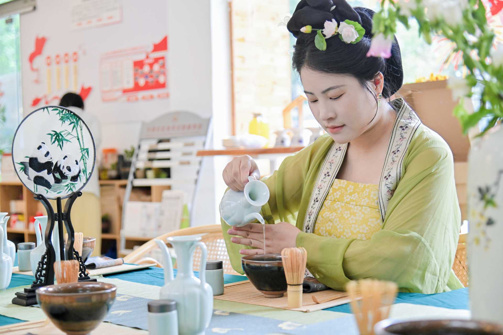 “点茶太有仪式感了,注水时手腕的力道和节奏都很讲究”“我最喜欢宋服,优雅精致,尽显东方韵味。”参与者们沉浸在文化的韵味中,兴致勃勃地交流感受。居民刘女士感慨:“如今,越来越多年轻人爱上汉服,街头巷尾时常能看到身着汉服元素服饰的身影,这正是文化自信不断提升的生动体现。”
