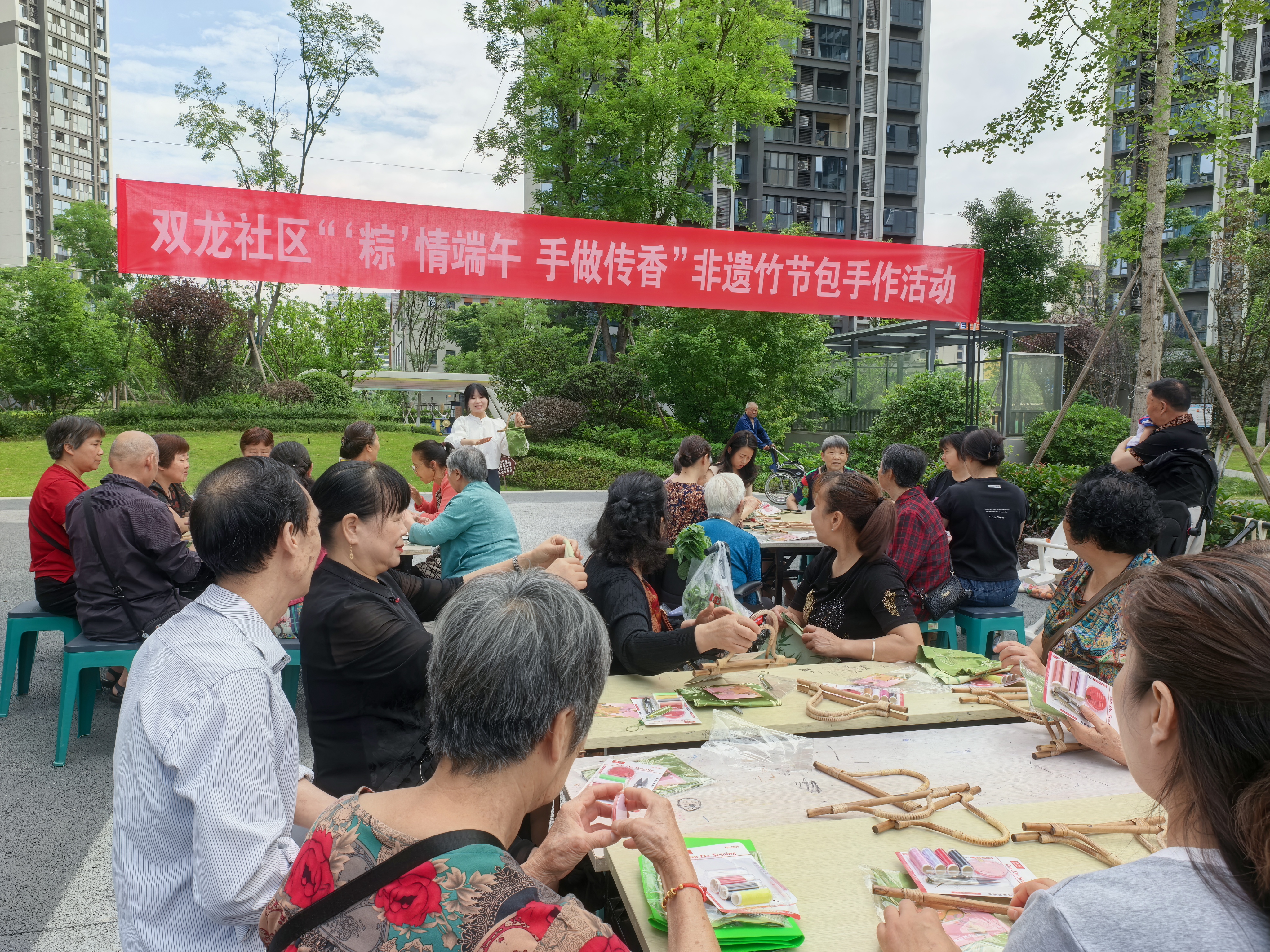 双龙社区开展了“粽’情端午,手做传香”非遗竹节包手作活动,将端午节传统文化与非物质文化遗产“宋锦”相结合。在老师指导下,居民们专注地裁剪宋锦布料、缝合包身。一个个精致典雅的手挽竹节包完成后,居民们兴奋不已,纷纷表示要将这份独具东方韵味的作品融入日常生活,感受非遗之美。