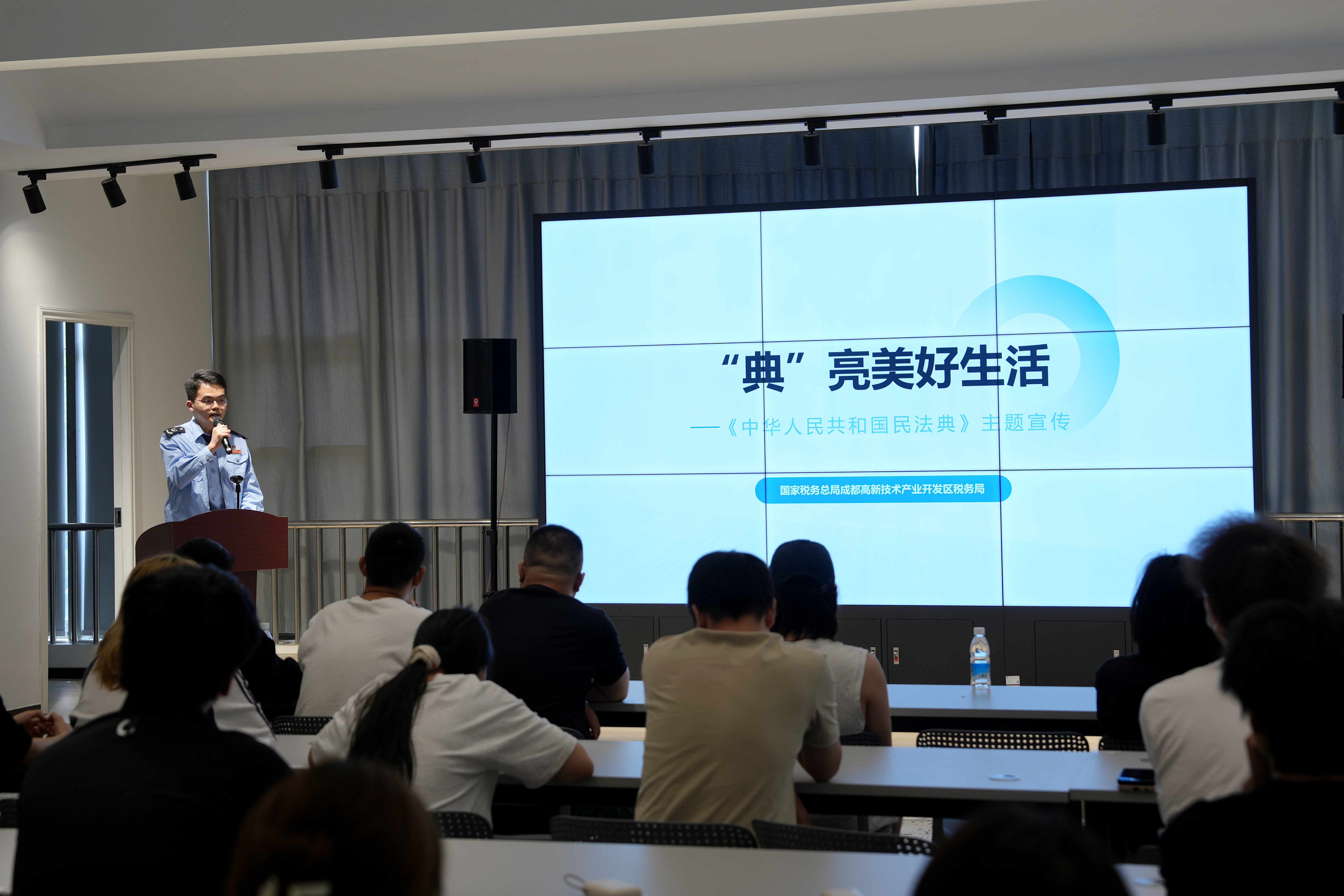 今年五月是第五个“民法典宣传月”,5月28日,国家税务总局成都高新技术产业开发区税务局(以下简称“成都高新区税务局”)讲师团走进成都职业技术学院,开展法律知识宣讲活动,通过政策讲解、案例分析、零距离答疑,为在校大学生带来一场内容丰富、实用性强的法治知识课堂。