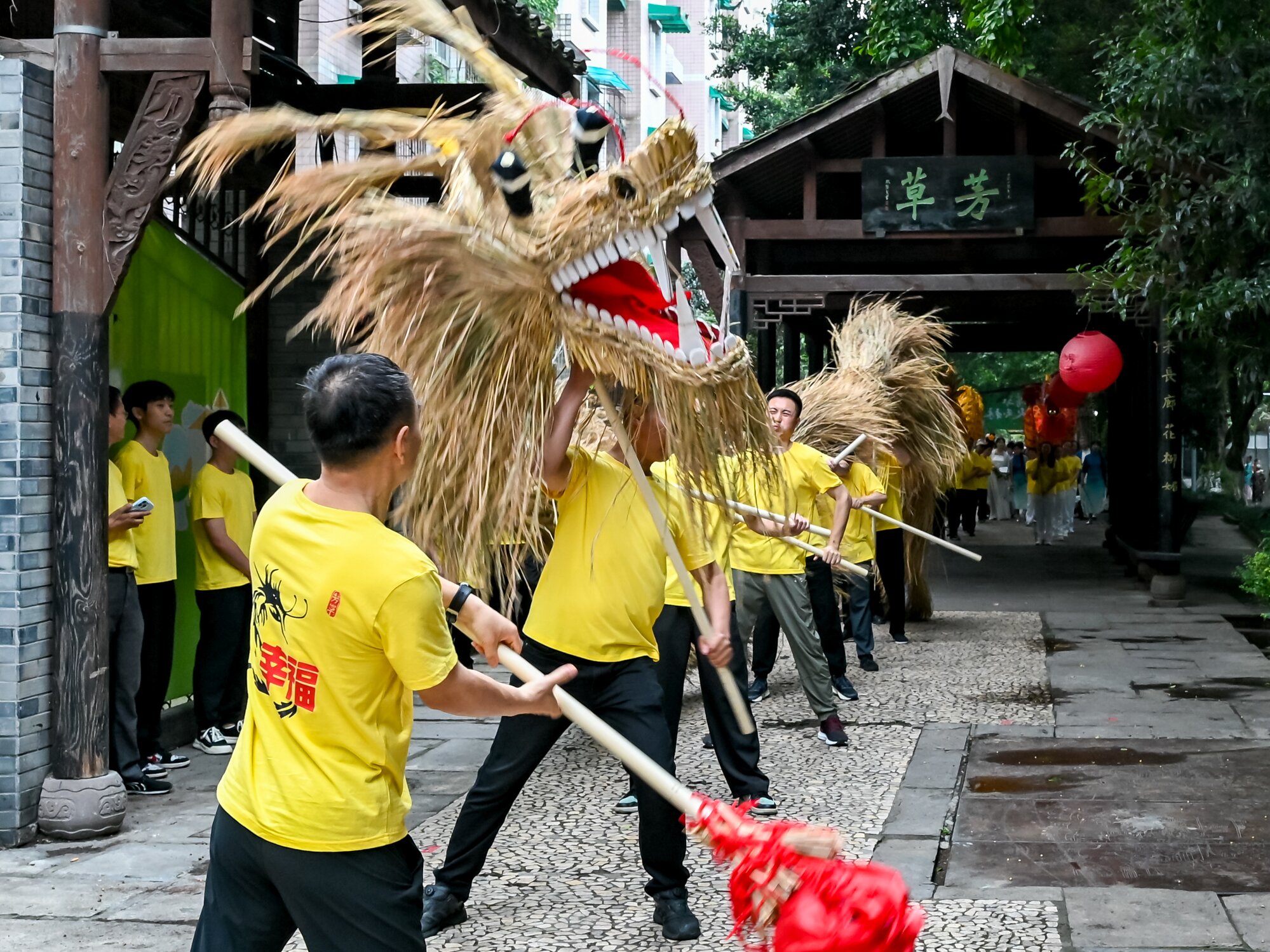 当由108位文化志愿者历时两个月精心打造的“芳草龙”开始巡游时,活动掀起了高潮。这条融合芳草街历史底蕴与人文风情的原创草龙,由老匠人传授技艺、年轻人注入创意、孩童增添童趣,历经四次筹备会打磨而成。巡游中,“芳草龙”在玉林西路蜿蜒前行,老中青三代居民共同舞动,沿街商户挂起艾草呼应,传统民俗与现代文旅活力交织,成为芳草街独特的文化标识。