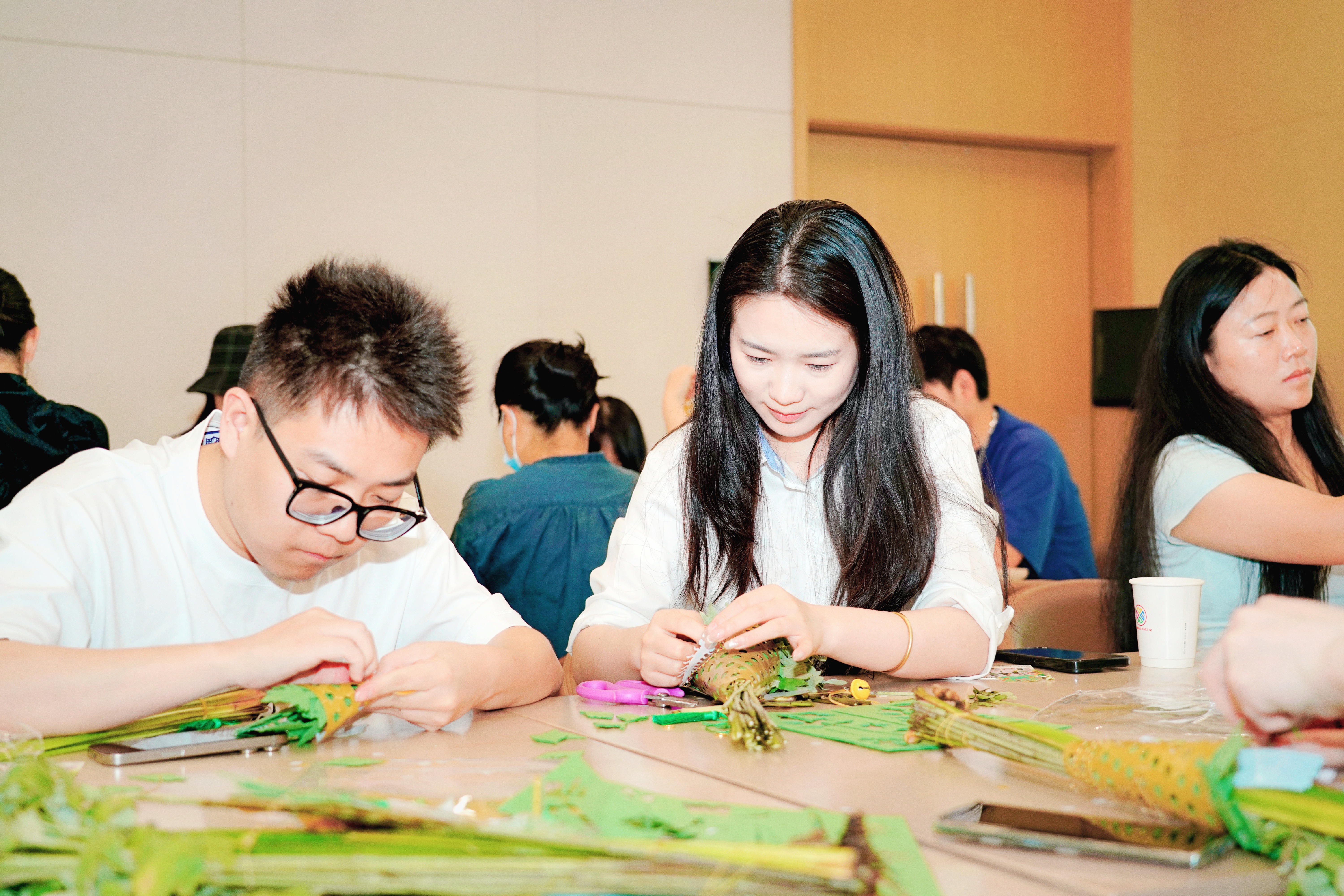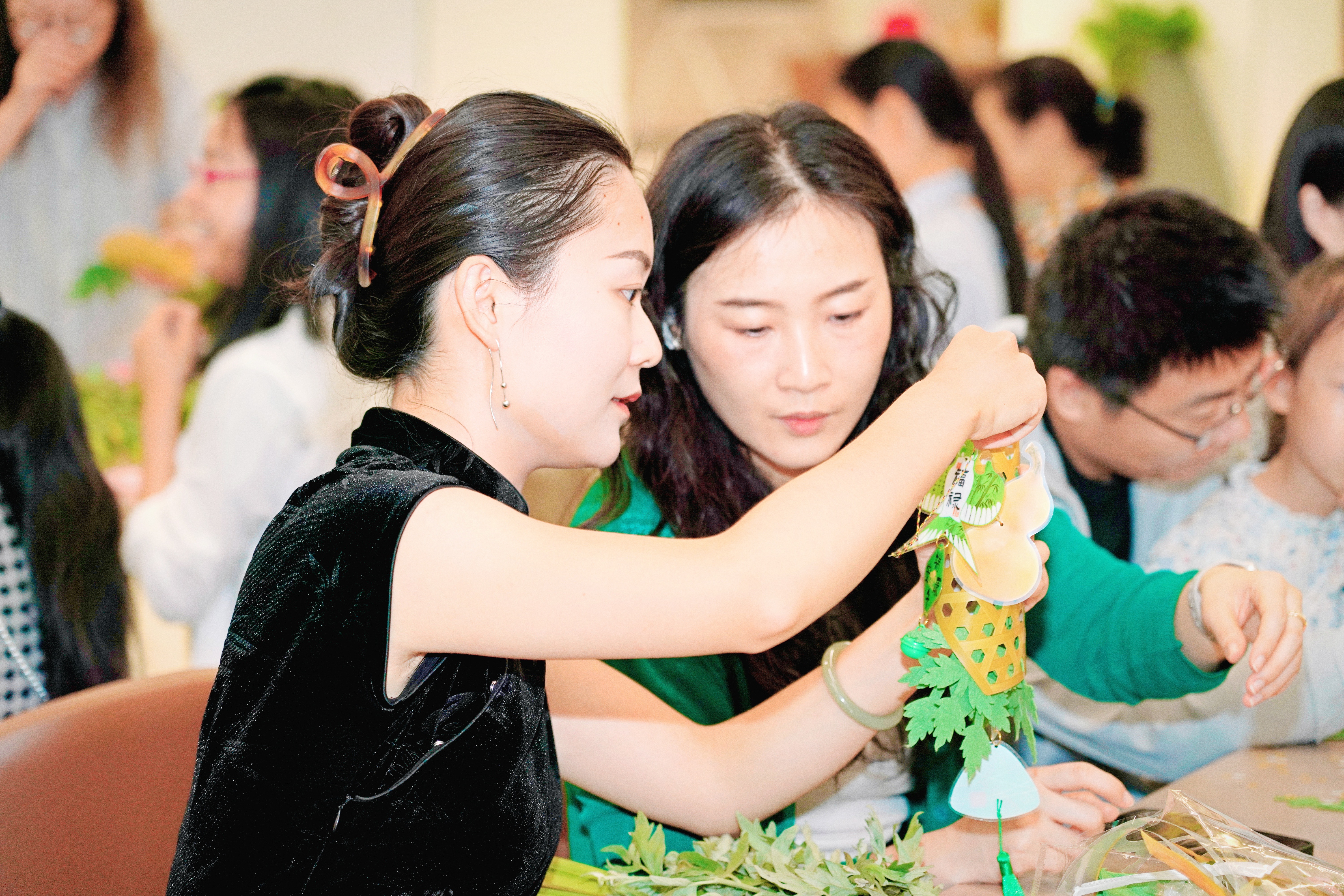 活动现场,大家精心挑选艾草、菖蒲等传统草本植物,搭配五彩丝线、中国结等装饰材料,开始制作艾草花束与门挂,传递端午节驱邪避疫的美好寓意。在展示成果的同时,大家也分享着创作心得,进一步加深了对端午习俗的理解与热爱。