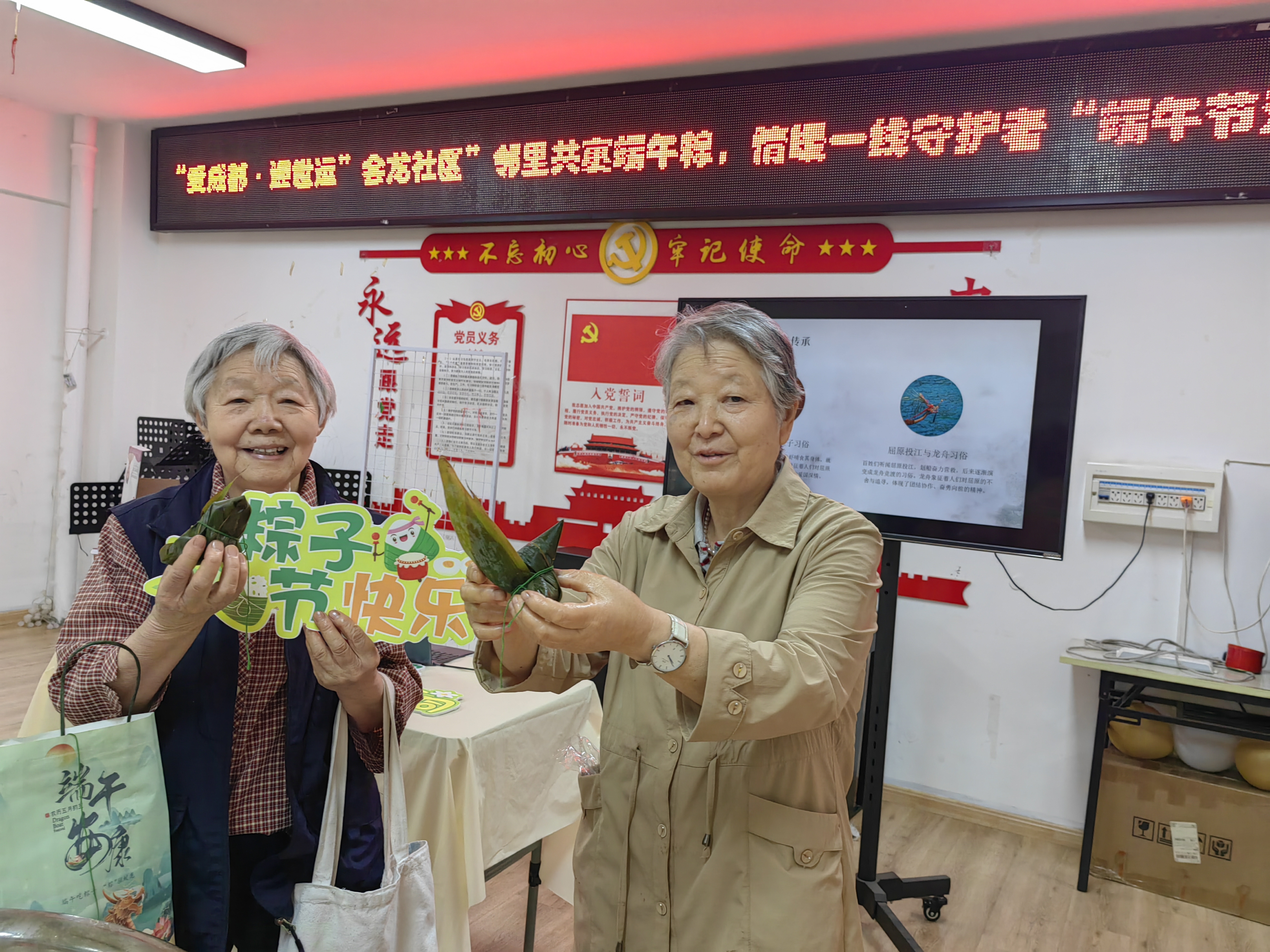 5月30日,会龙社区居民活动中心十分热闹。“先把粽叶卷成漏斗状,糯米要压实……”志愿者一边示范包粽技巧,一边讲解端午习俗与成都世运会的知识。居民们指尖翻飞,翠绿粽叶在手中变成饱满的粽子,桌面很快堆起“小山”。活动特设“情暖一线”环节,志愿者将千余个爱心粽子送到环卫工、物业保安等一线工作者手中,还为社区困难群体送去节日慰问。“看到他们的笑容,觉得这粽子包得特别有意义。”参与居民李阿姨说。