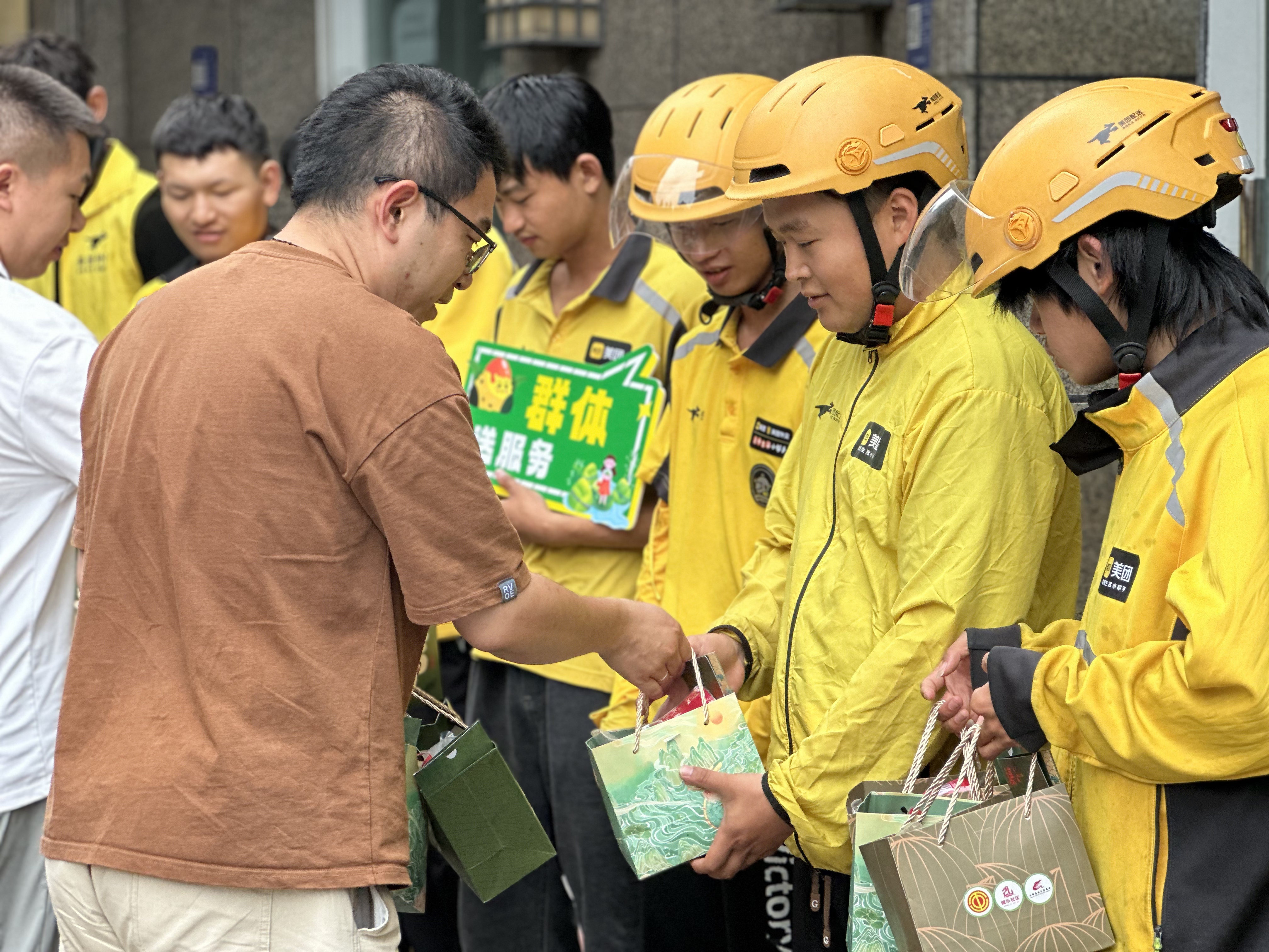值得一提的是,此次活动中居民与骑手角色互换:居民化身“配送员”,为骑手送上手写福卡。“端午骑上小电驴,一路‘粽’享好天气!”“城市很大,你很重要!”300张个性化祝福卡成为骑手们的“情绪加油站”。