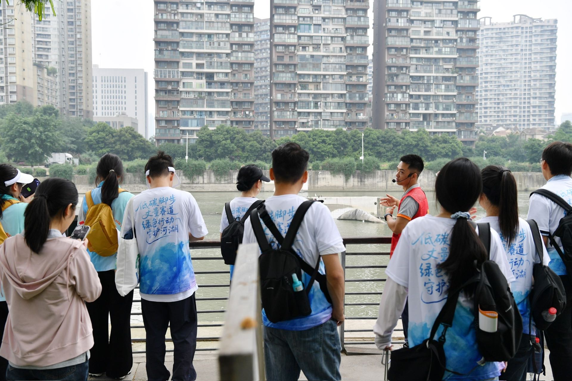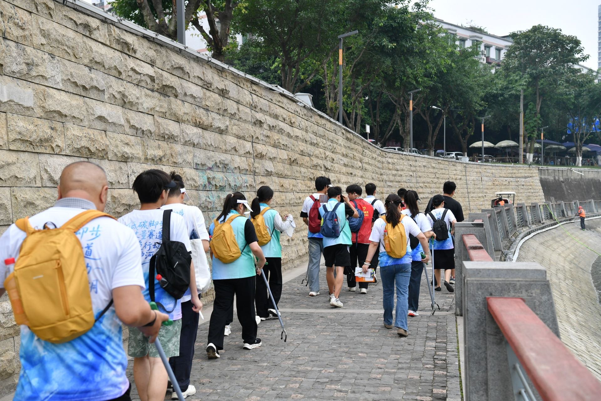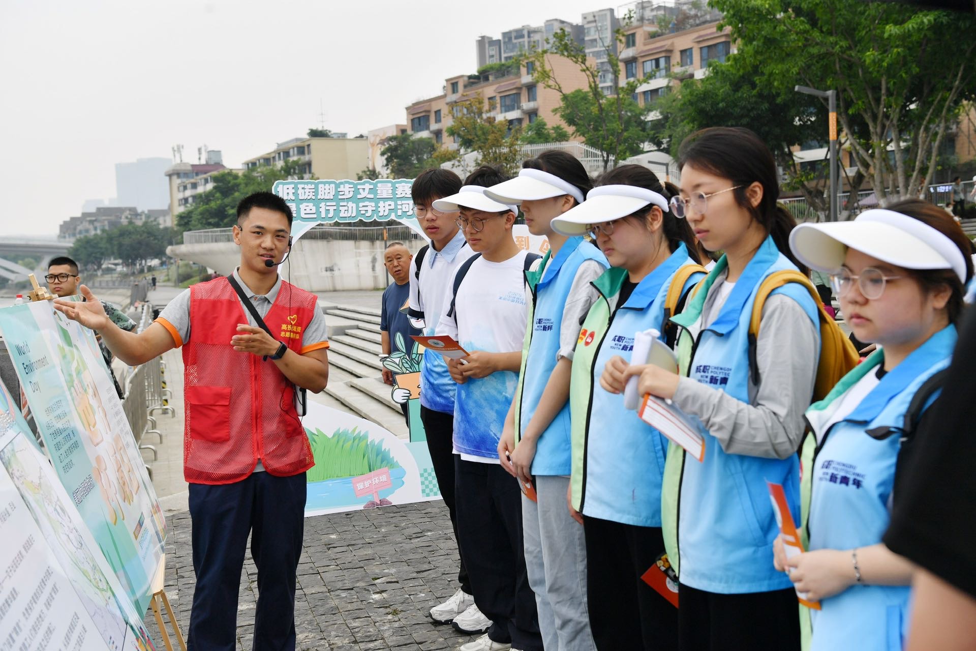 活动伊始,志愿者们在管护成果参观环节中,通过现场DP打卡点分组,领取巡河物资,聆听关于锦江治理前后变化的介绍以及生态环保意义的讲解,感受生态保护的重要性和成效。
