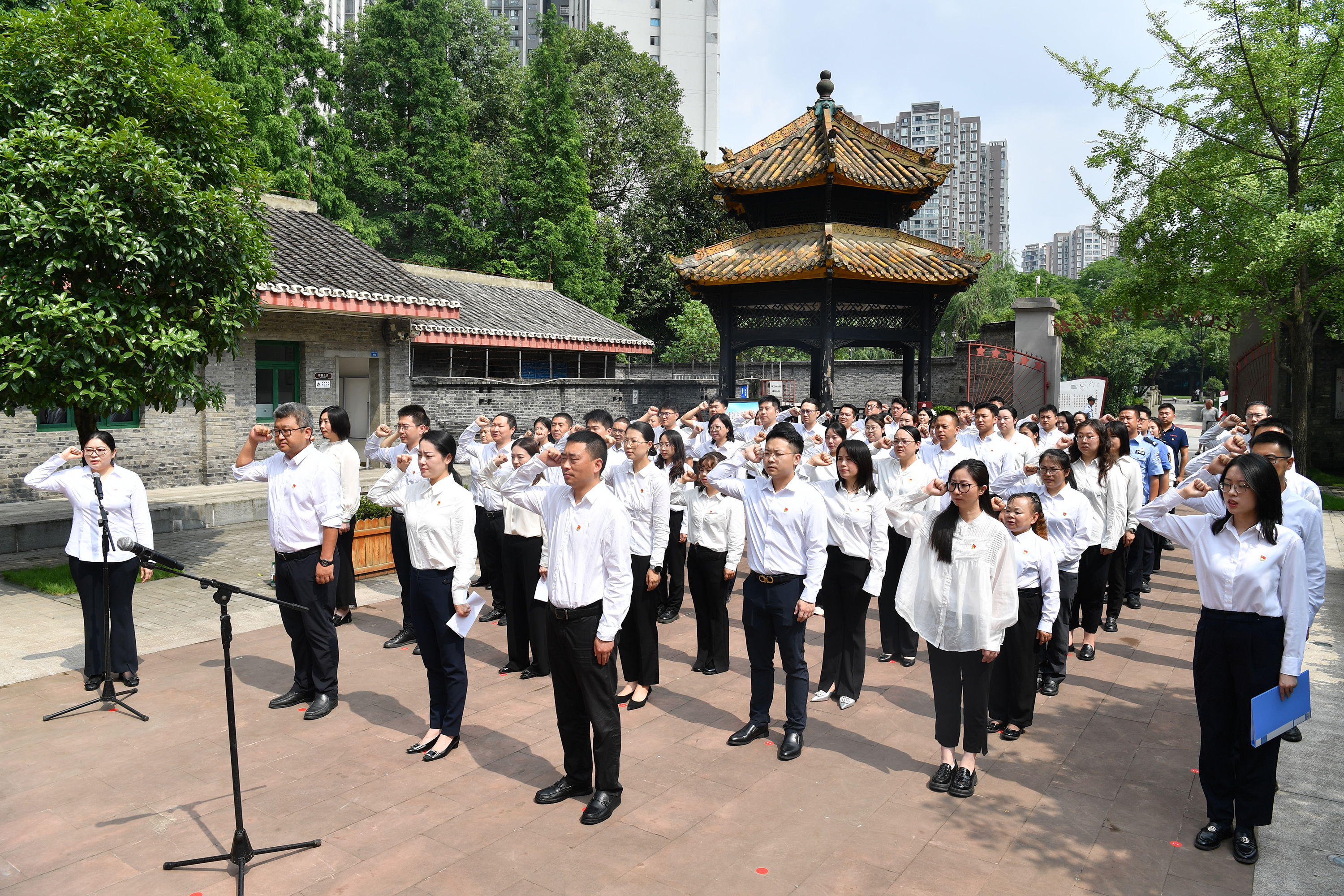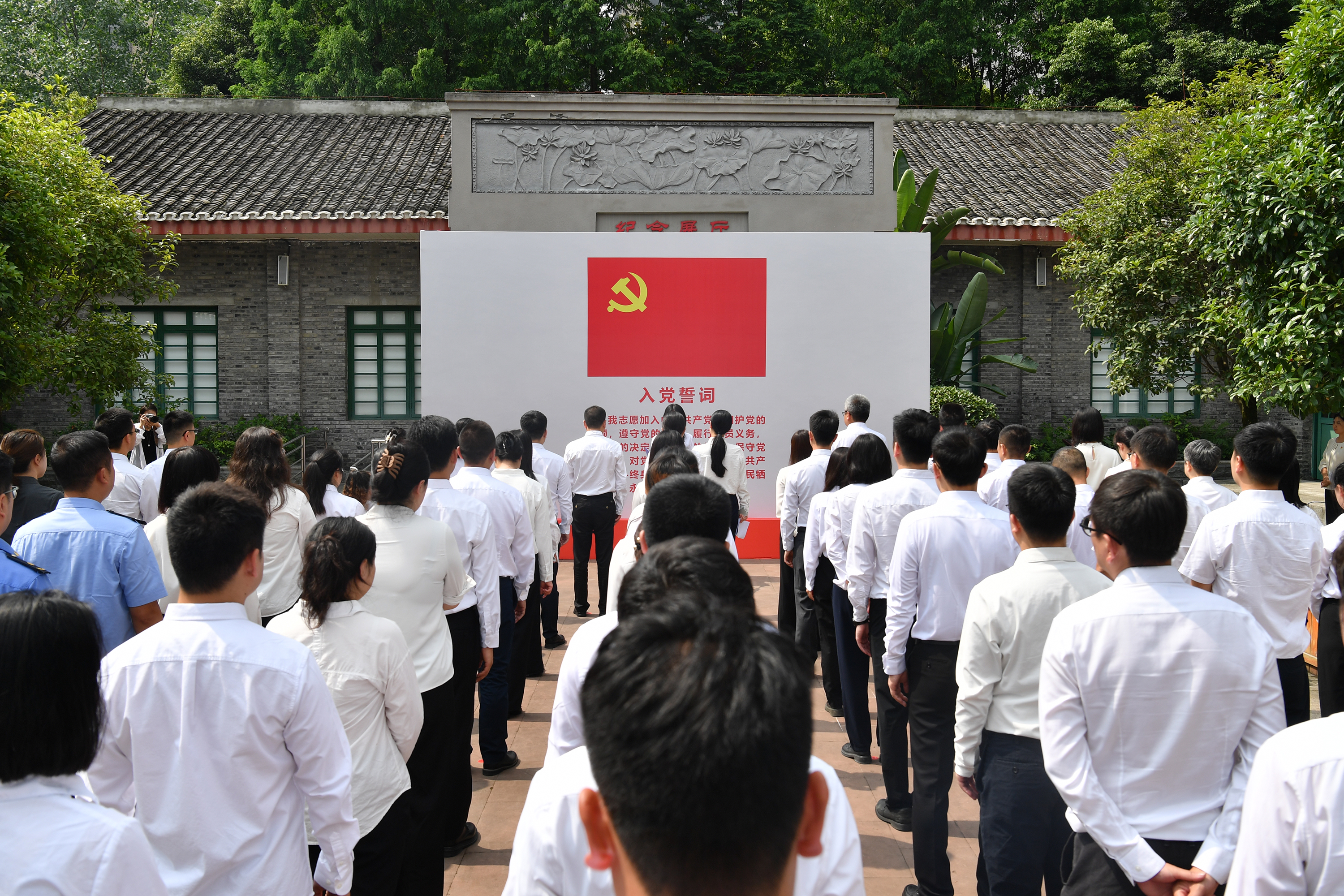 6月26日,2025年成都高新区新党员代表入党宣誓暨集中党性教育活动在毛主席视察红光纪念址举行。来自成都高新区机关、国企、街道、学校等单位的50名新党员代表参加此次活动,在这片具有特殊历史意义的土地上庄严宣誓,接受党性教育的洗礼。