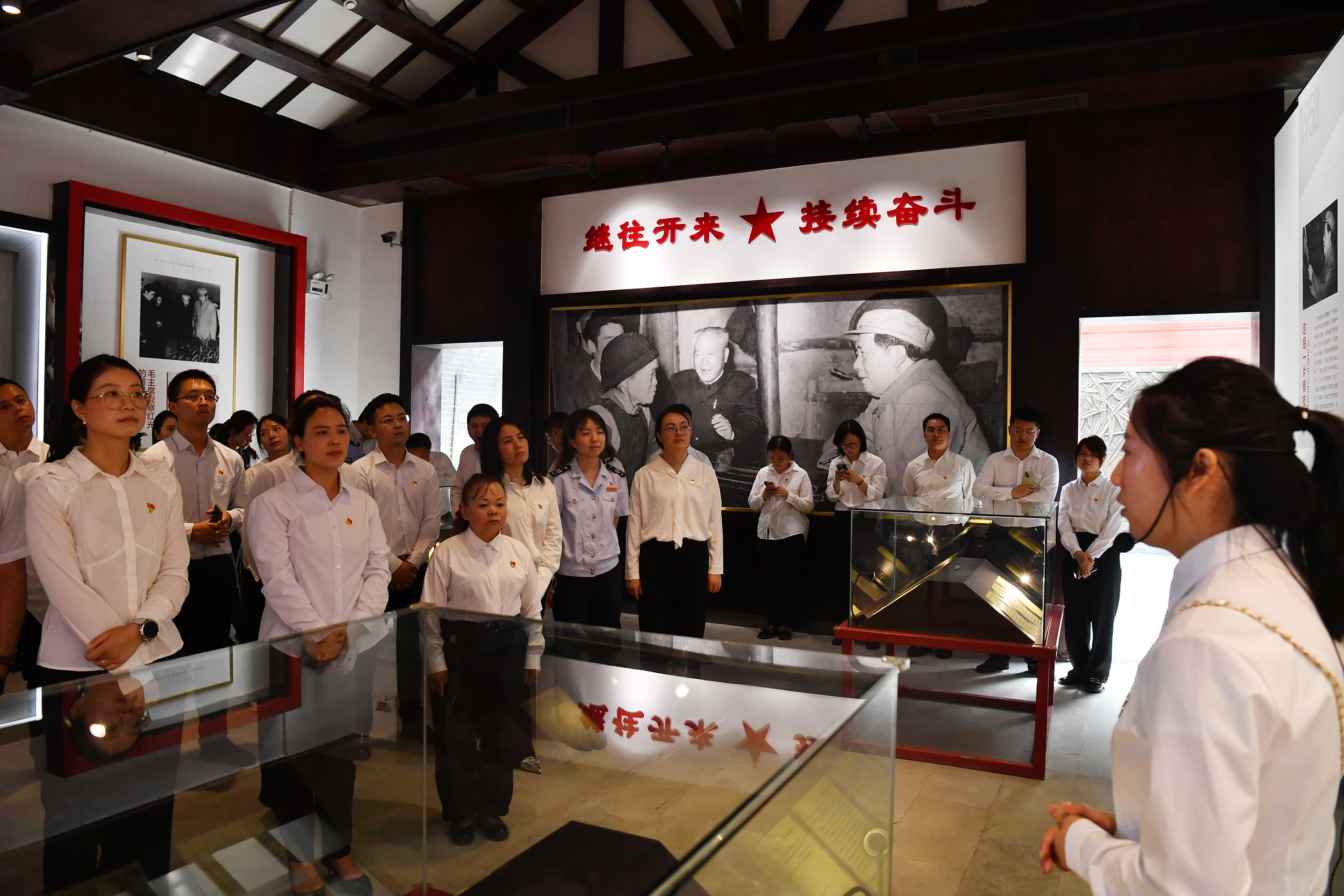 西园街道的工作人员曾忠林也感慨道:“讲解员带我们参观了毛主席视察红光纪念址,让我了解了老一辈的革命历史、老一辈的革命精神,受益匪浅。作为一名基层工作人员,我会将这些精神落实到工作中,为群众办实事、办好事。”