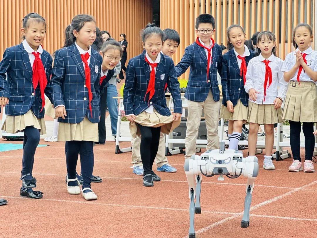 同学们和机器狗互动