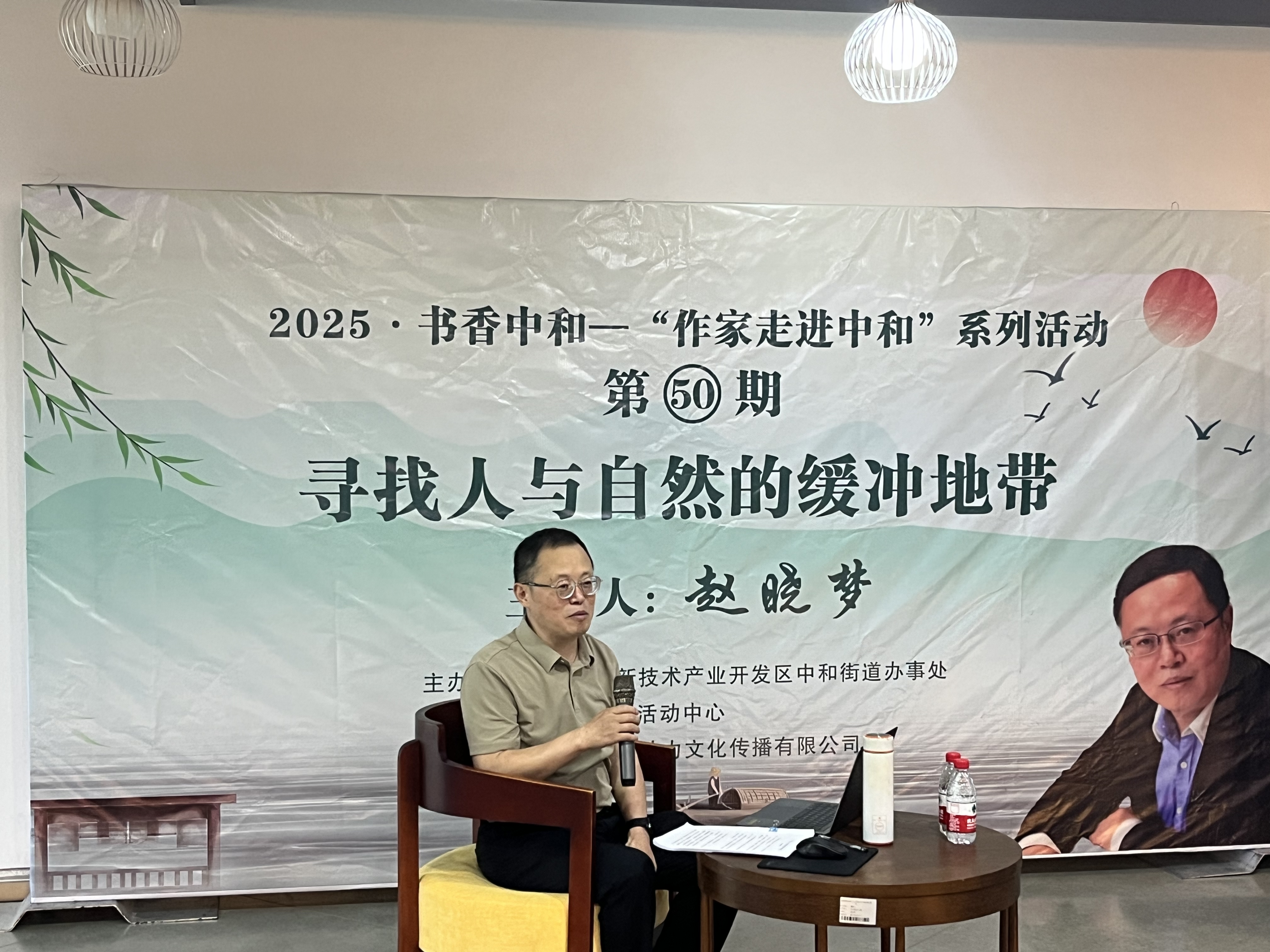 7月13日,2025·书香中和——“作家走进中和”系列活动第50期在中和文体活动中心举行。本次活动以“寻找人与自然的缓冲地带”为主题,主办方特邀诗人、高级编辑赵晓梦现场与读者面对面,共赴一场文学与自然交织的思想雅集。