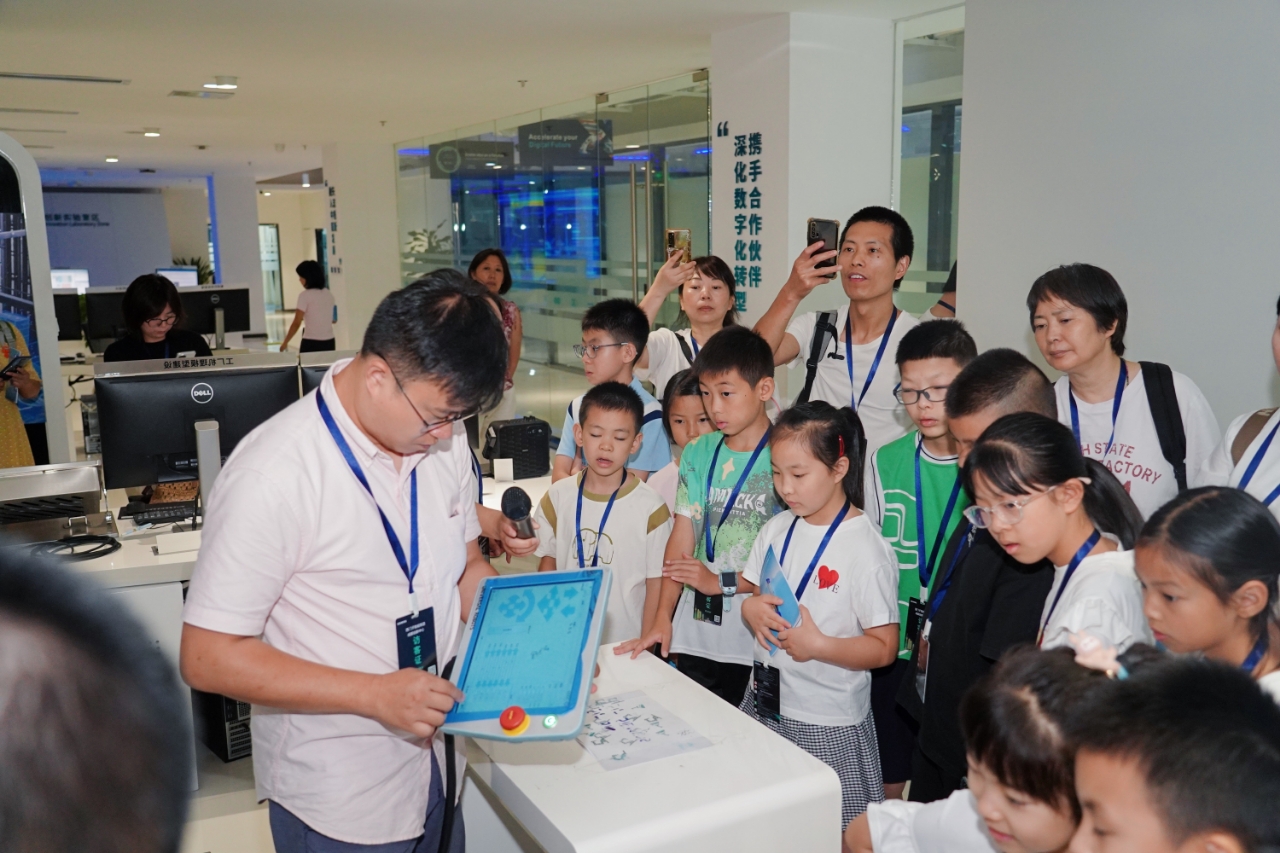 在数字化示范产线区域,孩子们化身“小小观察员”,在老师指导下,观摩一枚印章的智能化制造全过程,直观感受智能生产线的运作逻辑。实验室里,精密设备的动态演示引发阵阵惊叹。“智能设备如何完成物品生产?”“生产线由哪些环节构成?”面对孩子们抛出的“十万个为什么”,指导老师一一耐心解答,在互动中激发同学们科学兴趣。