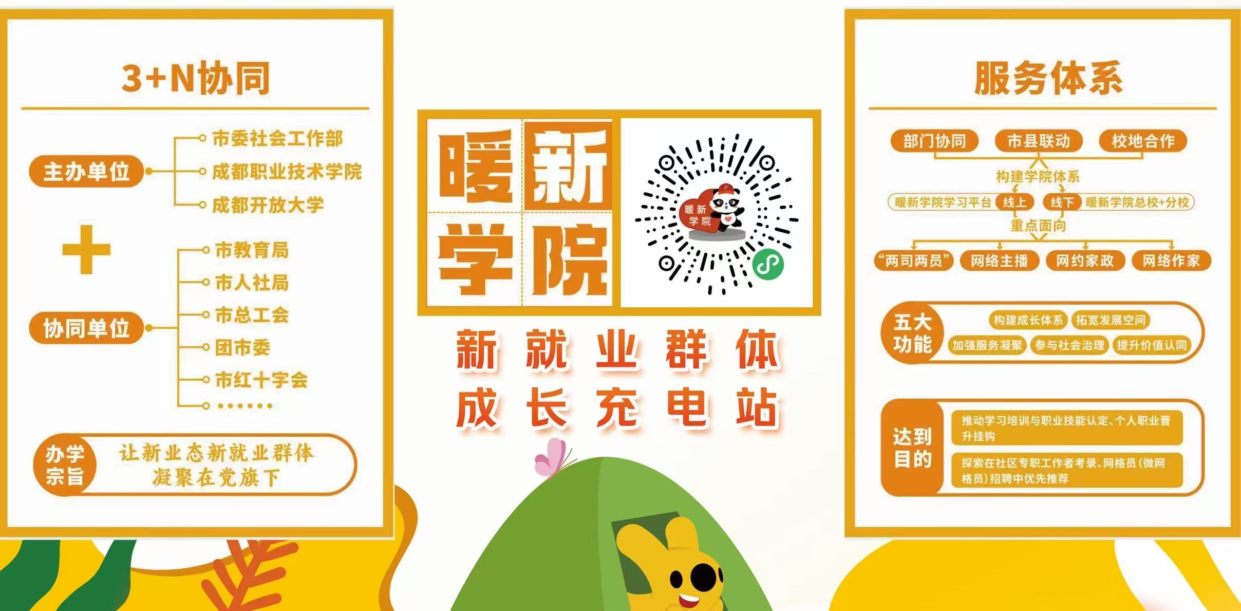 “暖新学院·高新分院”由市委社会工作部、成都职业技术学院等部门联合共建,开设创业指导、职业技能等课程,采用“线上+线下”灵活教学模式,推动新就业群体学习培训与职业技能认定、个人职业发展挂钩。
