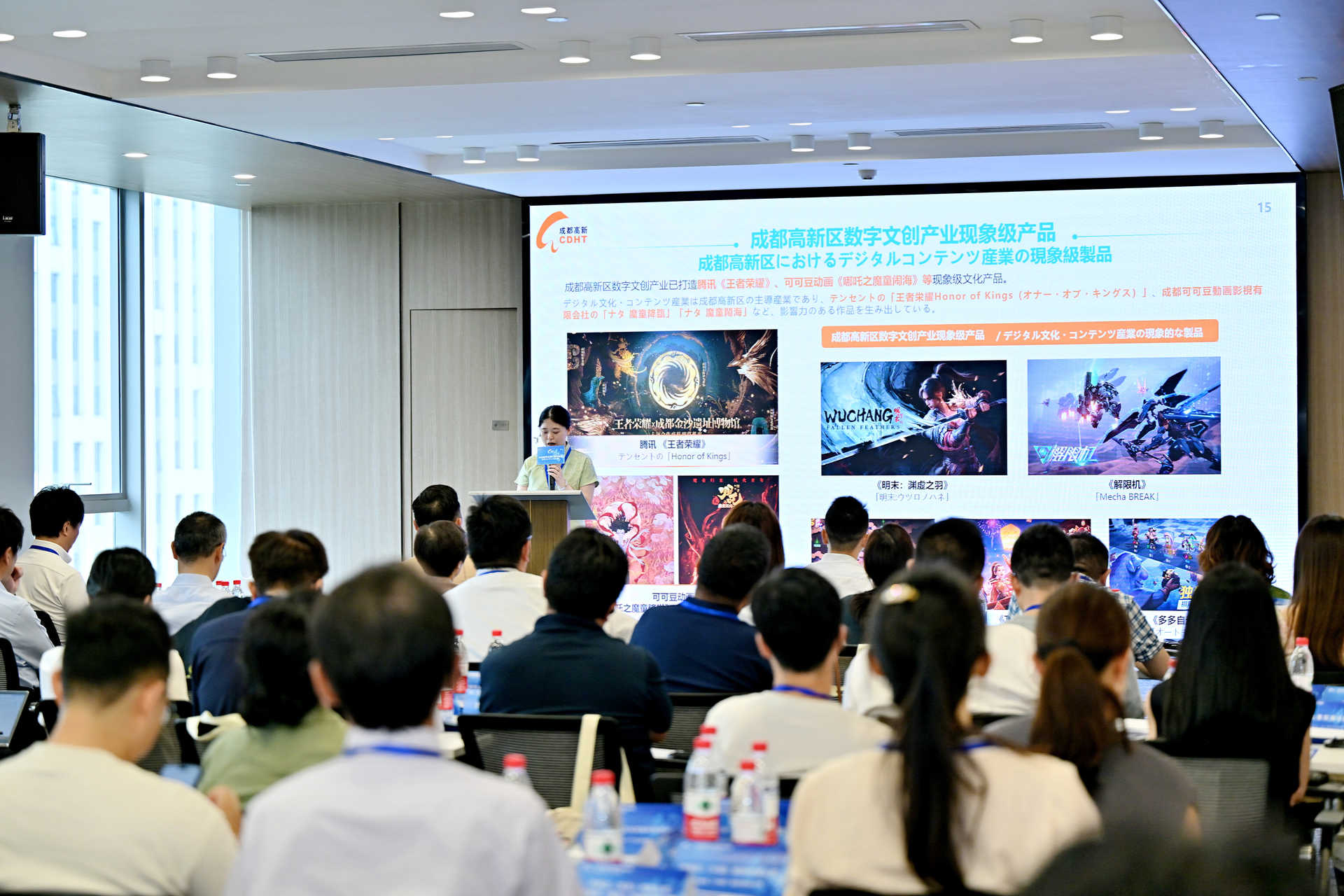活动现场,中日(成都)地方发展合作示范区中日会客厅相关负责人推介了示范区发展成果,详解“政策扶持+载体支撑+生态共建”的全链条服务体系,展现对日合作的平台优势。成都高新区数字经济局相关负责人介绍了片区数字文创产业规划,从关键技术研发补贴、游戏出海发行奖励到场景共建支持,为企业落地发展提供了清晰指引。