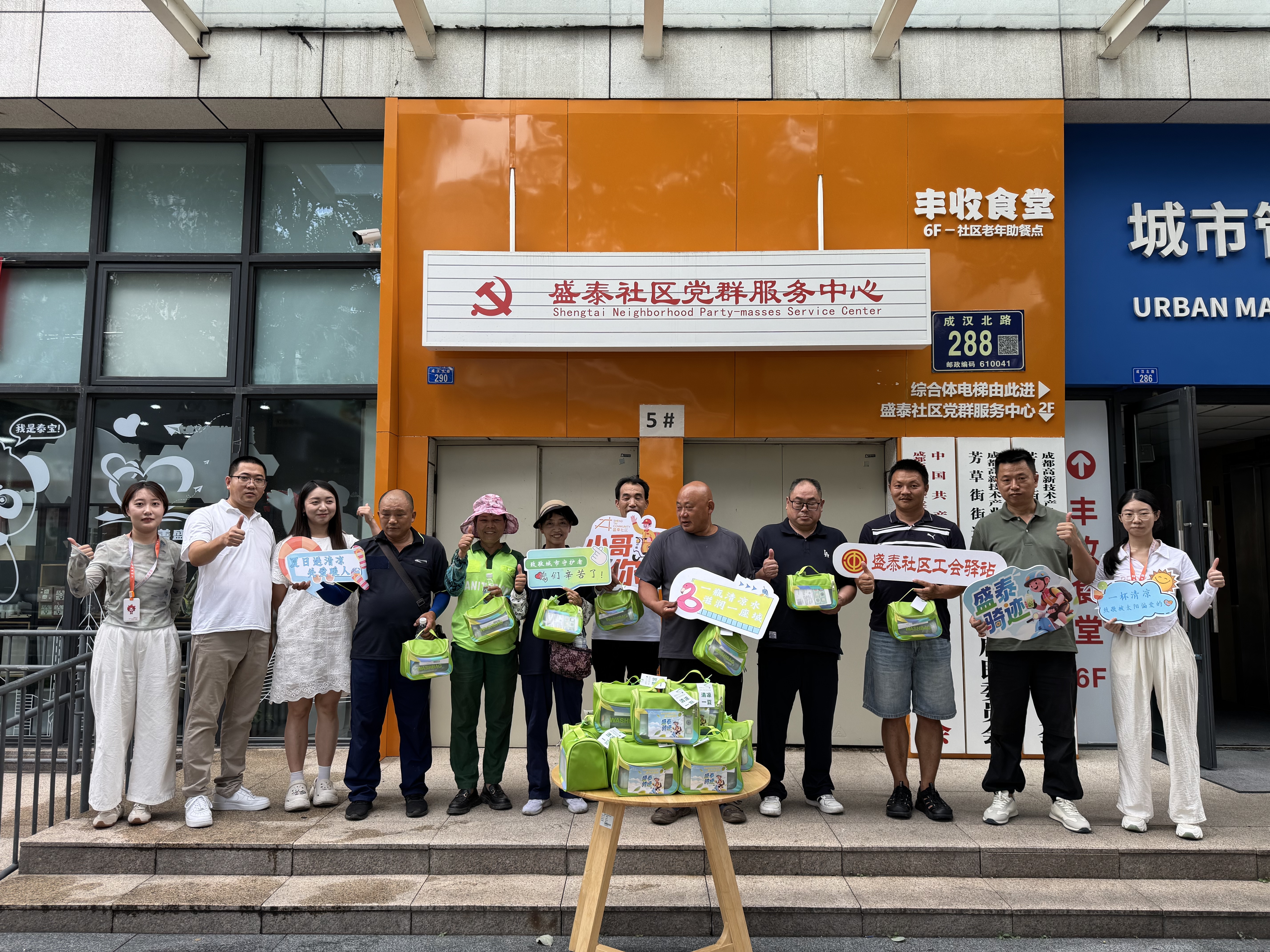 近日,成都高新区芳草街街道盛泰社区联合辖区爱心企业开展了“小哥你好·盛泰骑迹送凉记”活动,为163名快递员、外卖骑手和环卫工人送去夏日关怀。