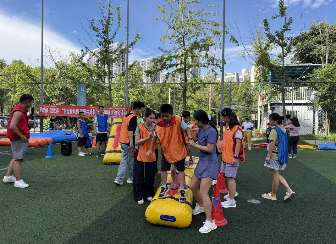 7月23日,成都高新区中和街道陆肖社区在社区运动公园足球场开展“世运新风尚·健康共成长”亲子趣味运动会。20组亲子家庭齐聚现场,在趣味互动中感受运动魅力,营造喜迎成都世运会的热烈氛围。