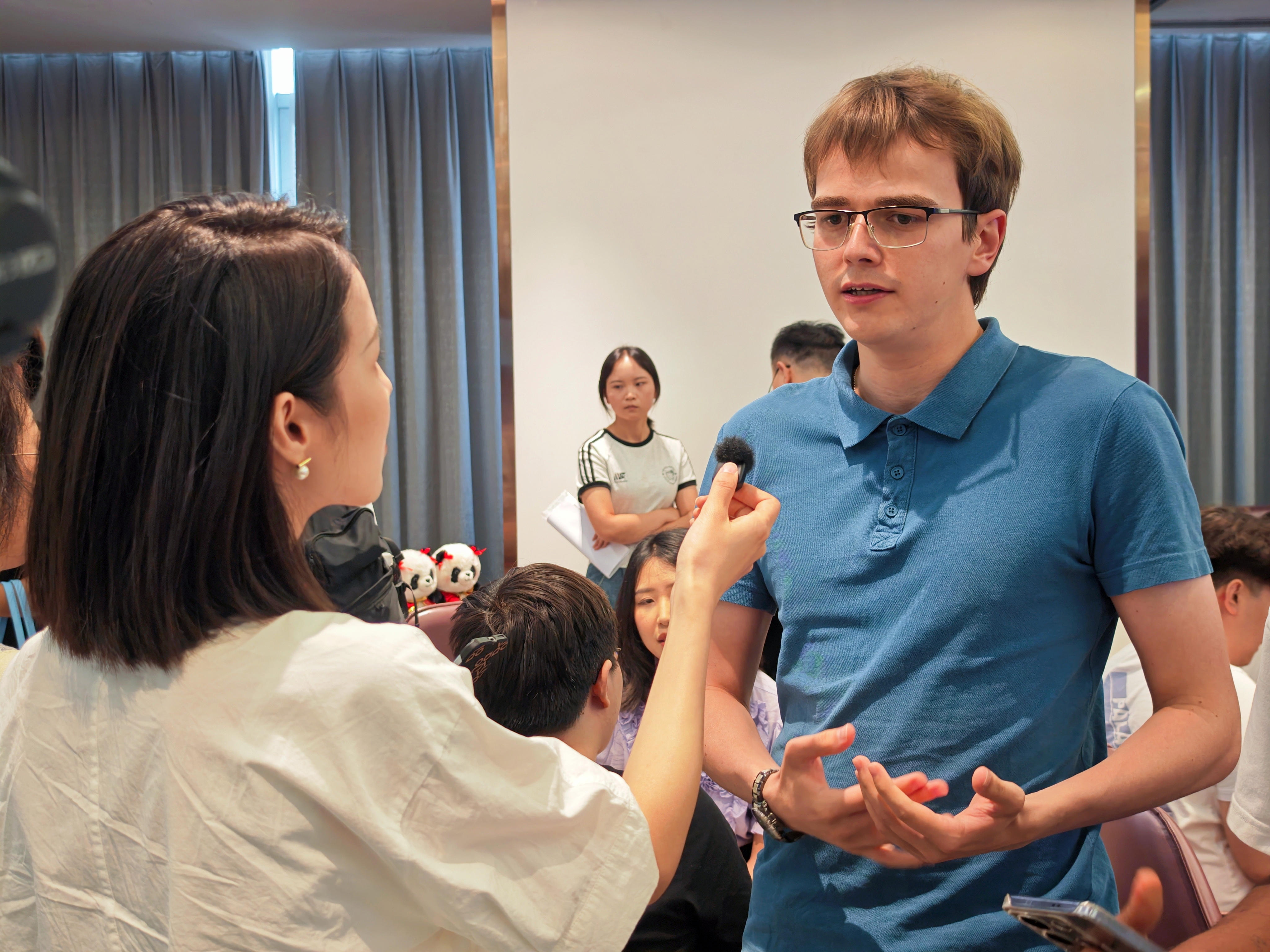 当天下午3点,候选人才鱼贯进入招聘现场。来自美国的Ryan(瑞安)告诉记者,他今年27岁,毕业于四川大学商学院。“相较于北京、上海,我更喜欢成都的生活、工作氛围,这里还被评为‘最具幸福感城市’。在成都学习多年,这里的幸福感也是最让人感到享受的。”谈起此次参加招聘的收获,瑞安表示,他已和数家企业进行了面对面交流,目前对于市场和海外销售等几个岗位比较有意向。来自俄罗斯的Roman则表示,自己目前就读于西南财经大学,参加招聘活动的目的,是想要多了解、多感受。