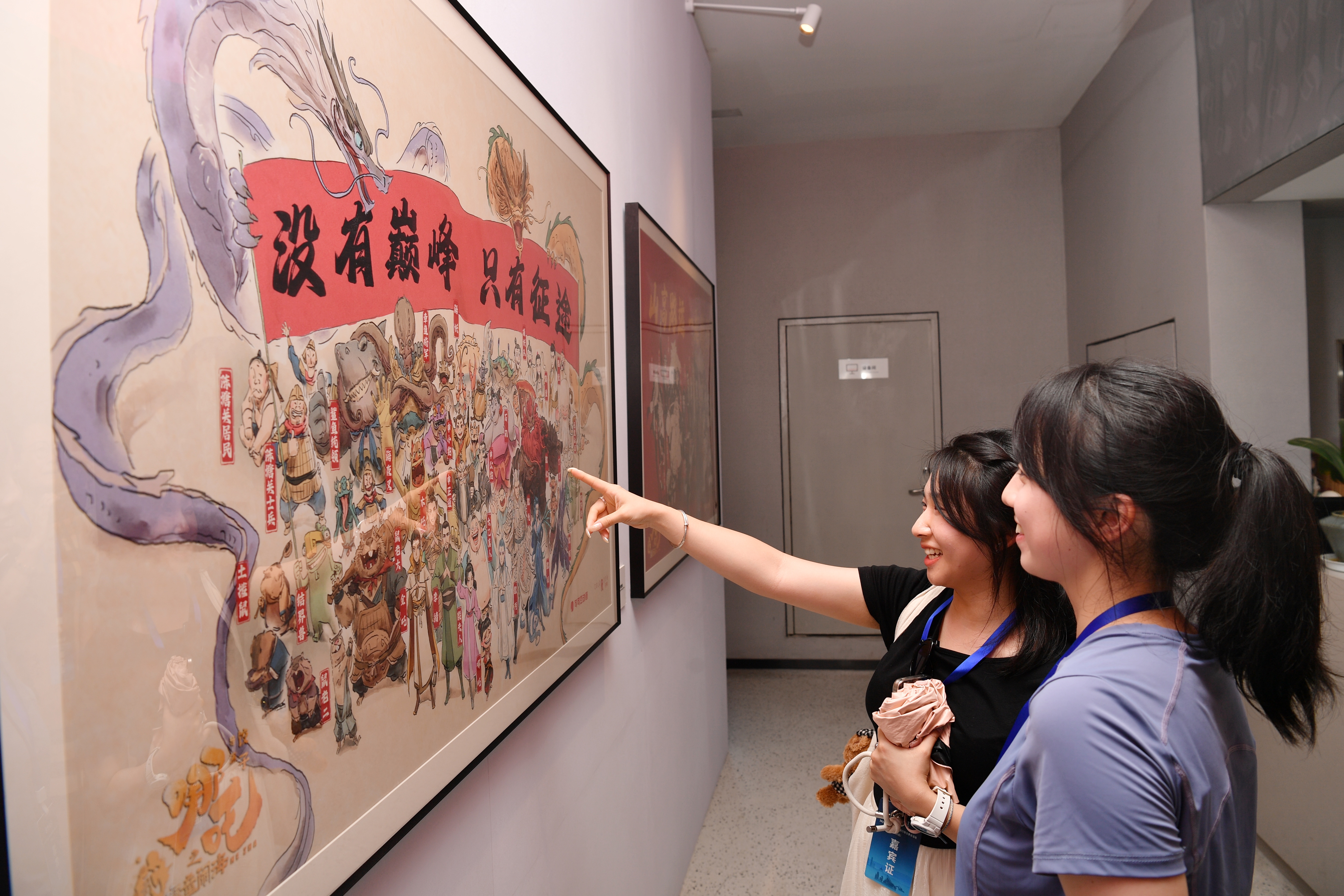 随后,大家又走进交子书院,在《哪吒之魔童闹海》幕后创作展中,探寻国漫巨制背后的“硬核密码”。从角色和场景的最初设定与最终的银幕呈现,到导演饺子亲手绘制的百余张海报原稿扫描件,大家在沉浸式体验中感受中国动画的创作魅力,更透过光影与文创的交融,触摸到成都高新区数字文创产业的蓬勃脉动。