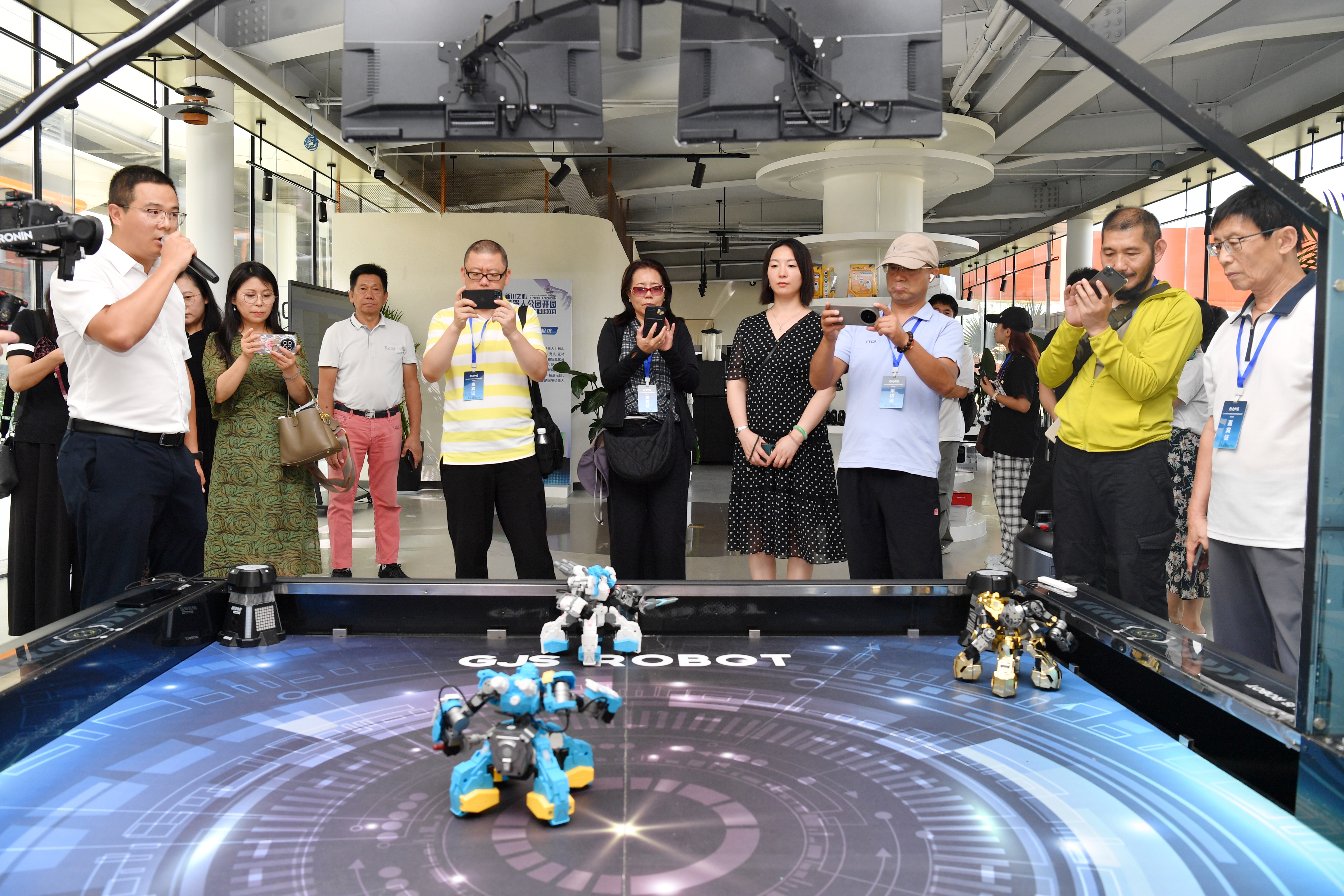 透明水族箱里的仿生机器鱼也吸引了大家的目光。只见它们摆动尾鳍,灵活穿梭于水草间,相关负责人向大家讲解其仿生技术与应用场景。“机灵小匠”互动区里,对战机器人则成为新焦点。“这是结合智能控制与竞技体验的项目,游客能编程操控机器人对战。”几位华文媒体代表听完介绍后跃跃欲试,于是在工作人员指导下设置指令,看着机器人在平台上灵活“格斗”,现场响起欢呼与笑声。