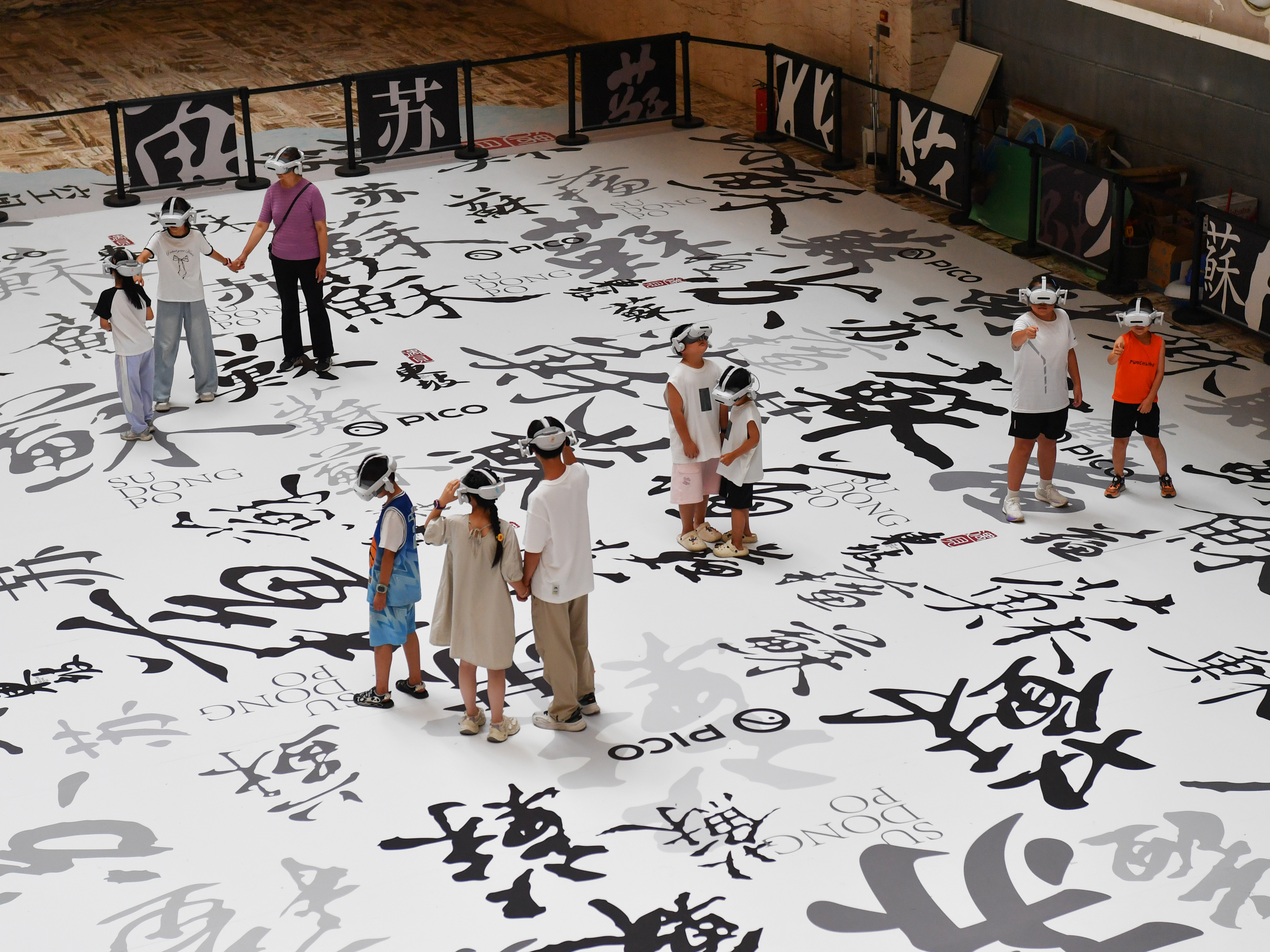 7月29日,环球中心。家长带着孩子参加《遇见东坡》沉浸式VR体验展,感受科技与文化相结合的魅力。