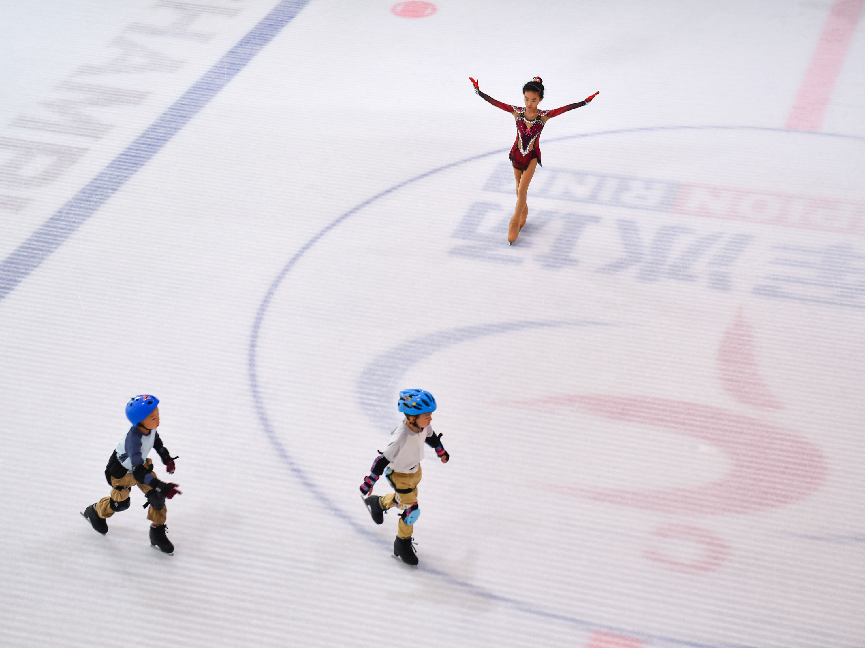 7月30日,世豪广场。孩子们在学习滑冰,花样滑冰小选手的技术过硬。