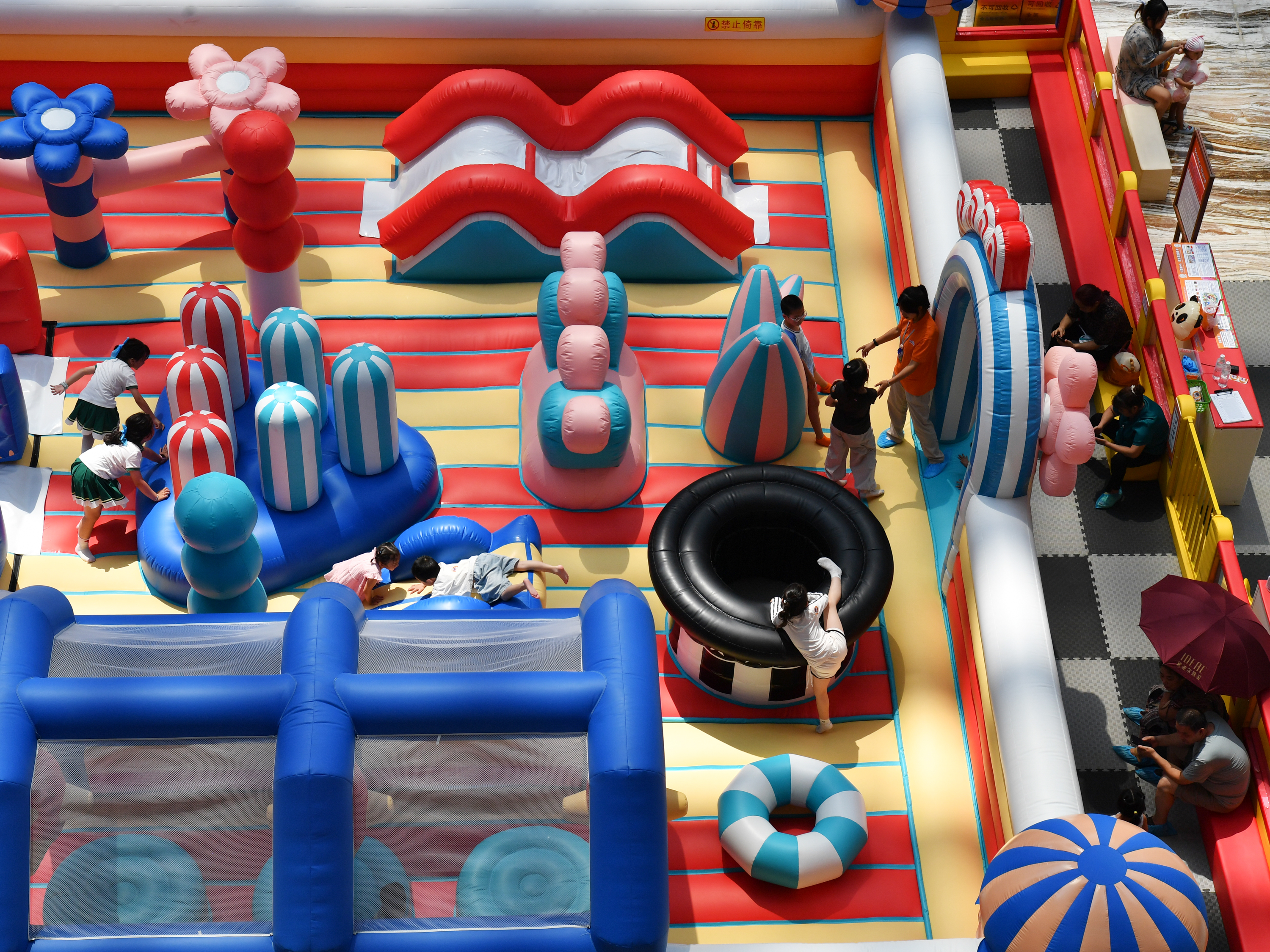 7月29日,环球中心。孩子们在儿童乐园惬意玩耍,无拘无束。