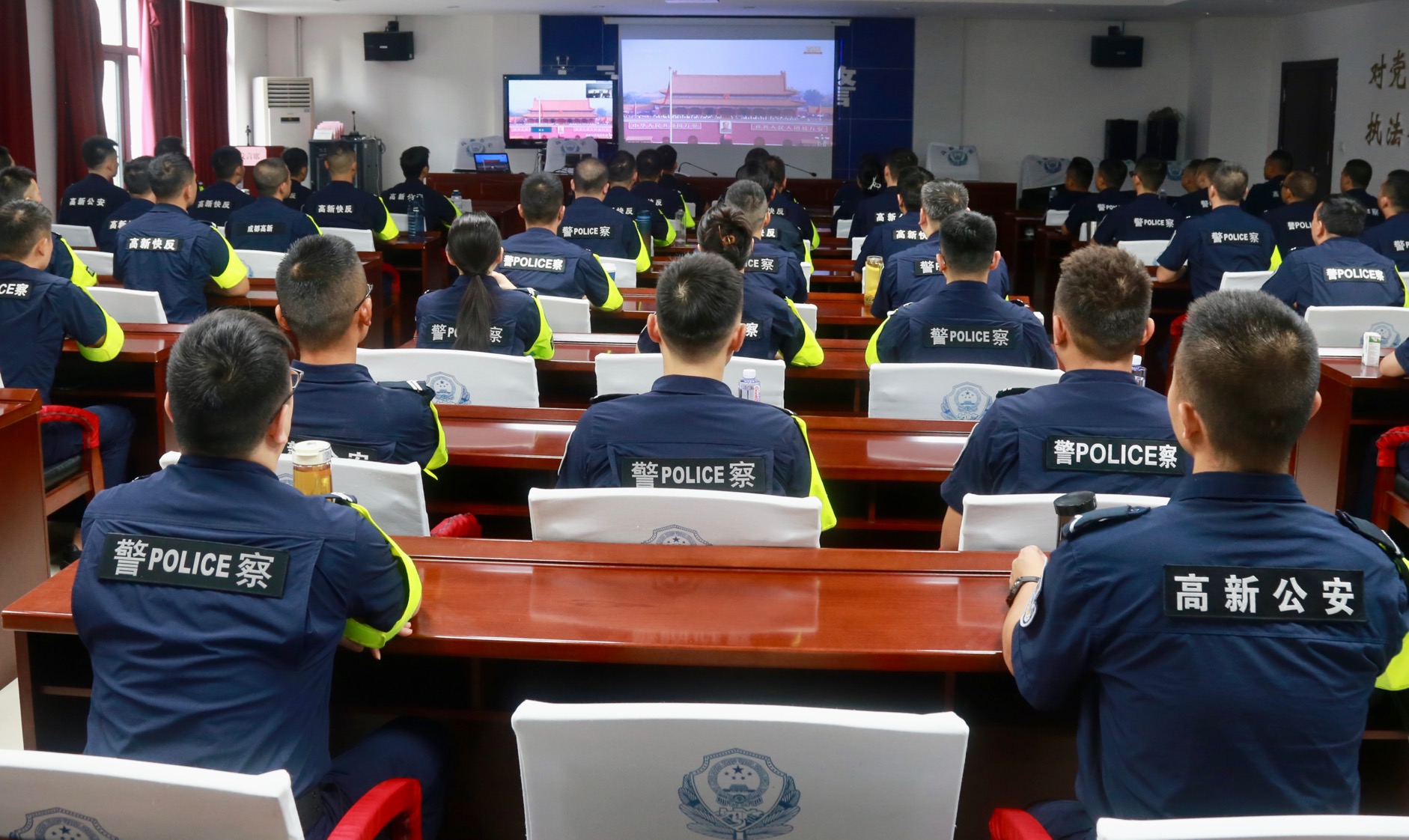 成都高新公安收听收看大会直播