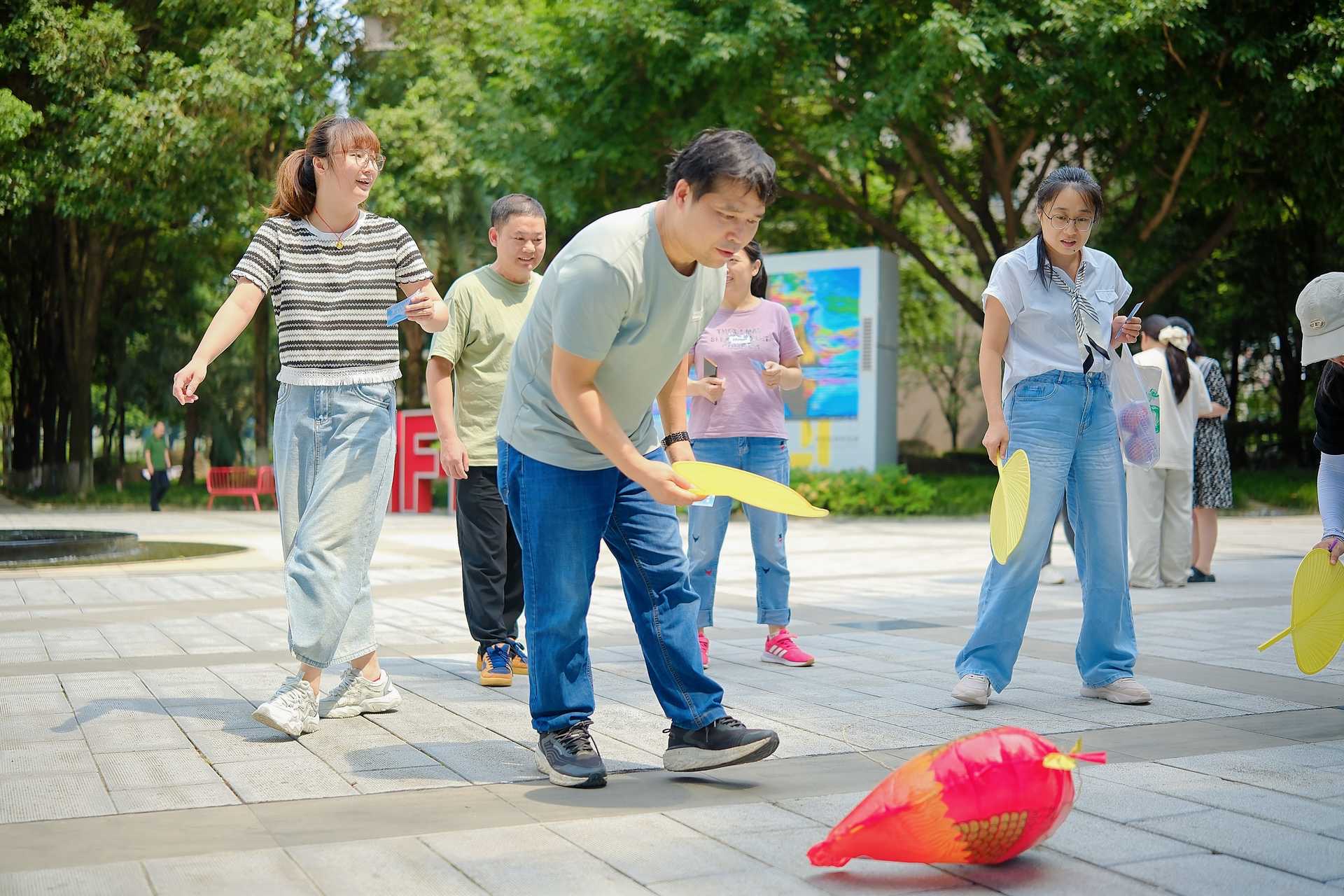 游园会巧妙融合传统消暑智慧与趣味体验,设置了四个互动游戏区。“最强人造风”环节中,职工手持蒲扇体验古人消暑方法,感受传统生活智慧;“驱暑神投手”通过投掷游戏,让大家在玩乐中轻松掌握防中暑常识;“寻荫记忆翻牌”在考验记忆力的同时,潜移默化传递遮阳避暑理念;“‘钓’以清心”则以趣味垂钓形式,帮助职工学会辨别实用防暑防护用品。