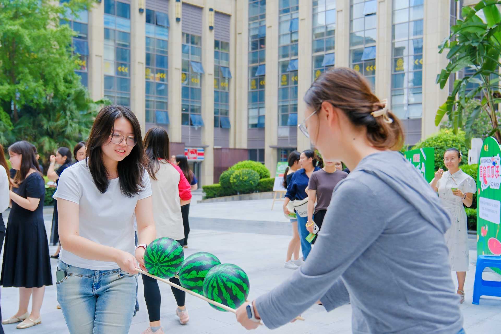 9月2日,在凯乐国际举办的“西瓜总动员”主题游园会同样创意满满。活动现场被打造成充满活力的“西瓜乐园”,红绿相间的色调营造出轻快的氛围,瞬间将职工从繁忙的工作状态带入轻松愉快的场景中。