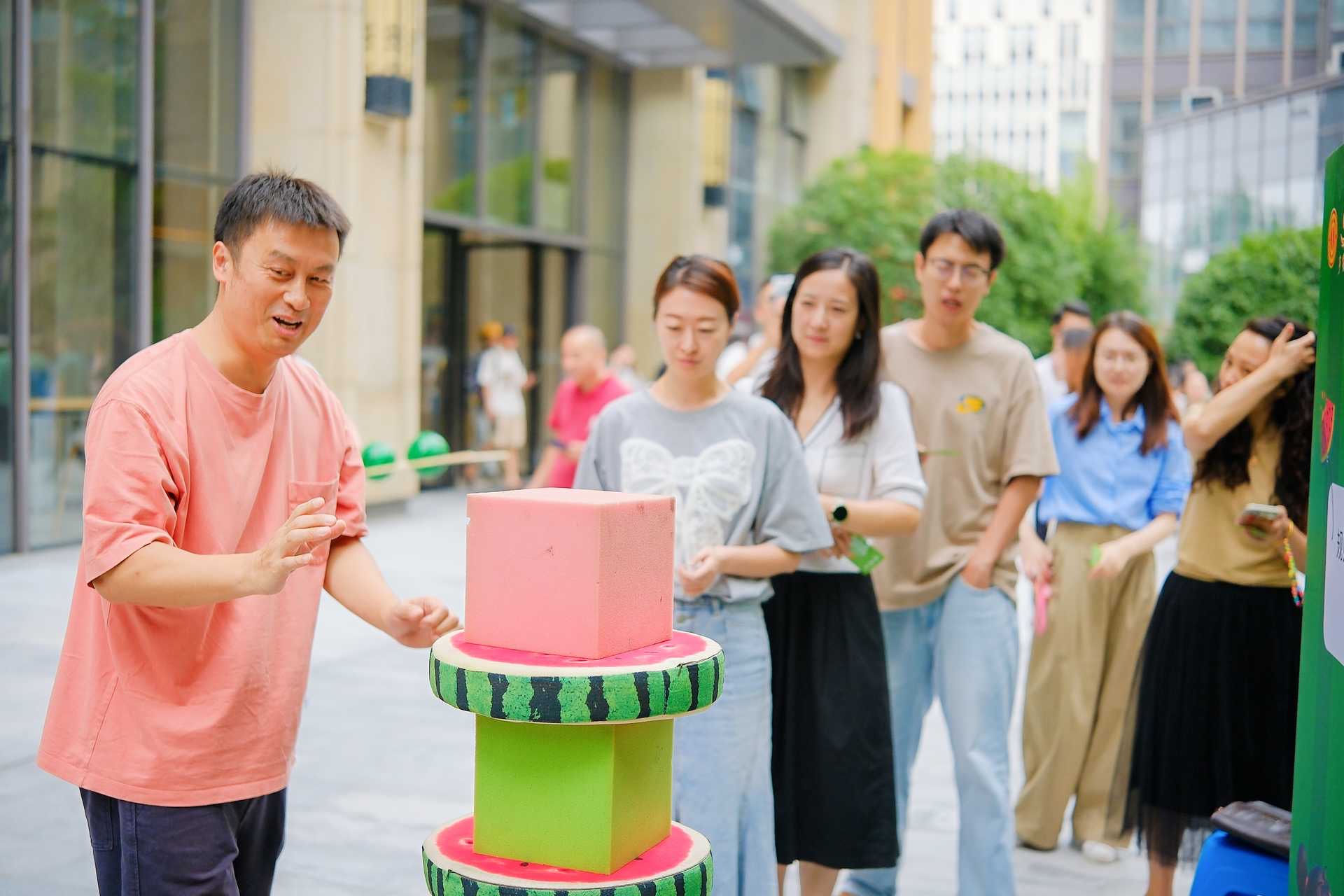 活动现场还设置了“盲盒瓜瓜乐”“西瓜搬运工”“欢乐钓西瓜”“西瓜叠叠乐”等趣味环节。职工们在抽奖惊喜、搬运挑战、叠塔比拼中,既收获了轻松愉快的体验,也在互动中增进了彼此交流,进一步增强了团队的凝聚力。