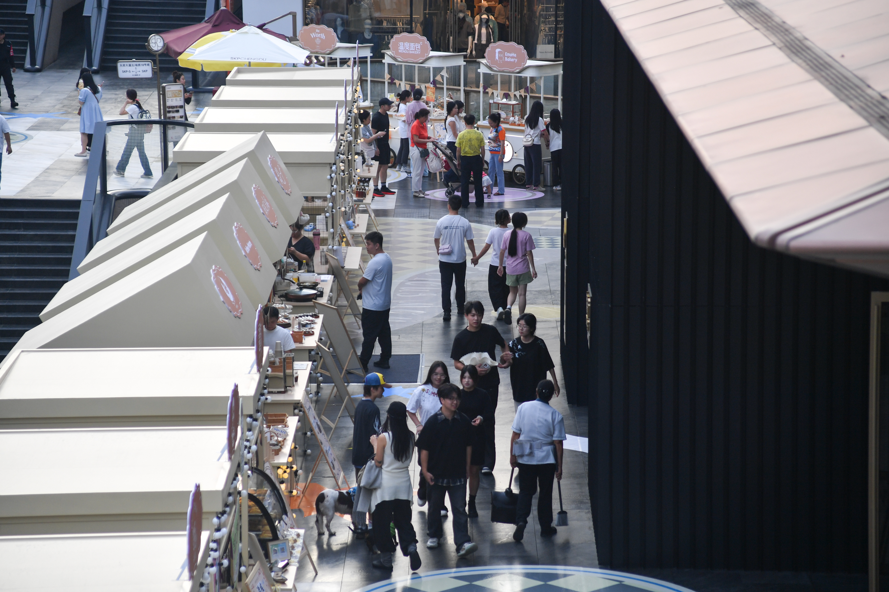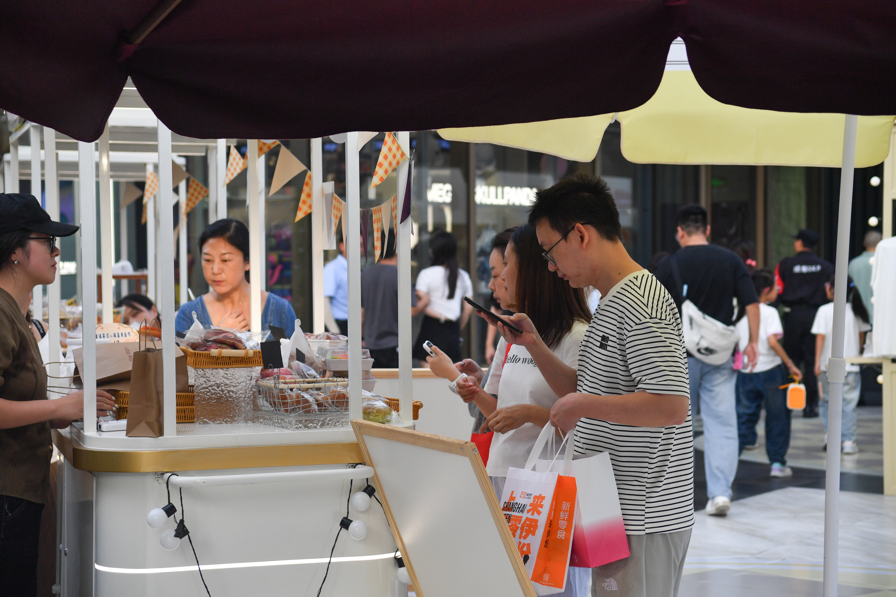 在K大道2F的美味市集中,严选时令食材打造的特色美食吸引不少市民驻足品尝。活动现场香气四溢,“食尚”与烟火气交融,不少家庭游客手持“风味收集册”,在指定店铺有序打卡,期待解锁神秘定制周边。在商区内进行的中秋特演,动感旋律与轻松氛围让市民不自觉放慢脚步,或驻足聆听,或随节奏轻晃,现场互动感十足。