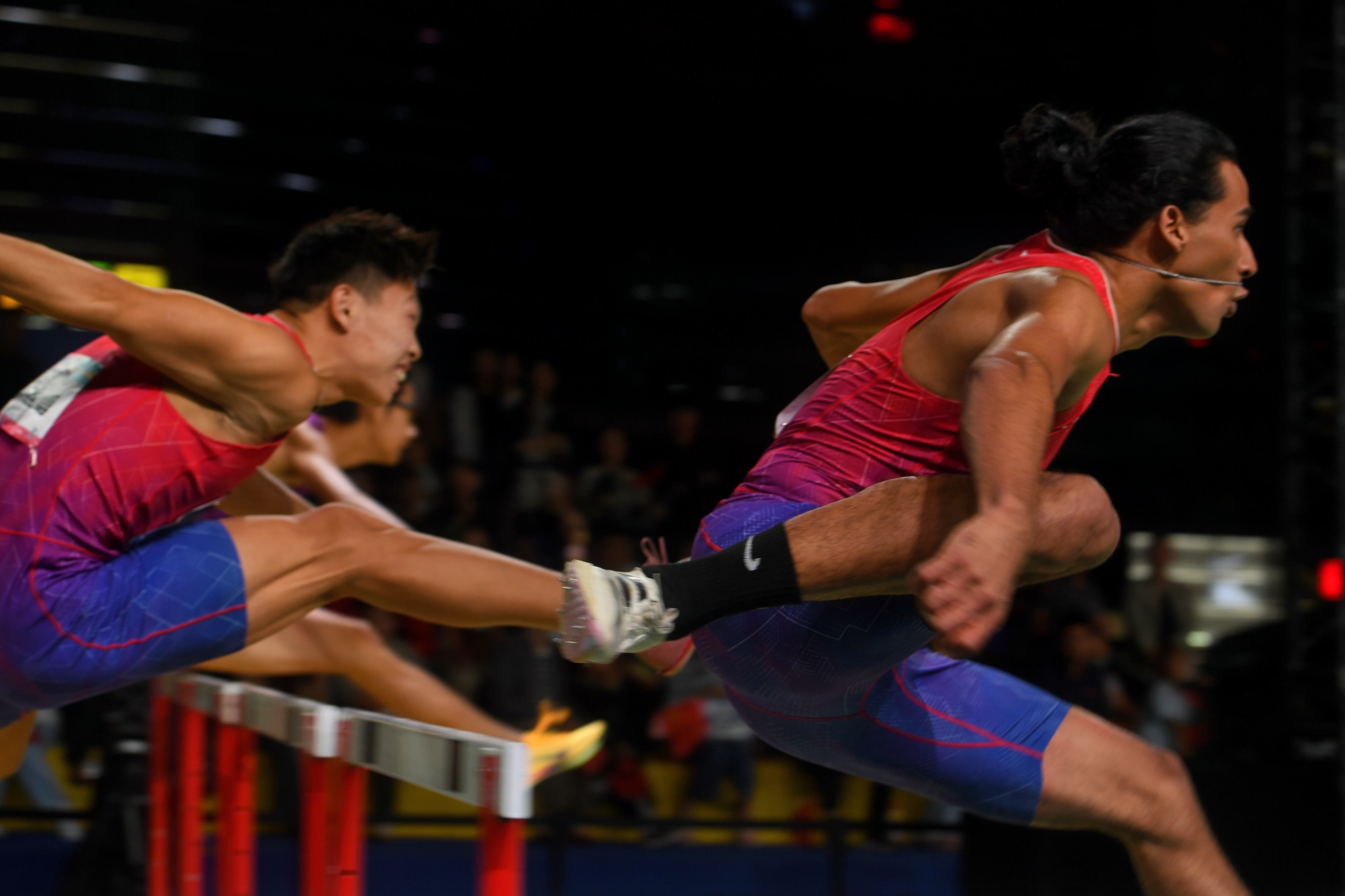 比赛期间,“致敬中国男子跨栏”环节通过影像放映向传奇运动员致敬,点燃了全场热情。全运会冠军、亚洲U20冠军及2025赛季最佳成绩创造者与新锐选手齐聚,展开粤港澳大湾区全运会前的街头对抗,将现场氛围推向高潮。
