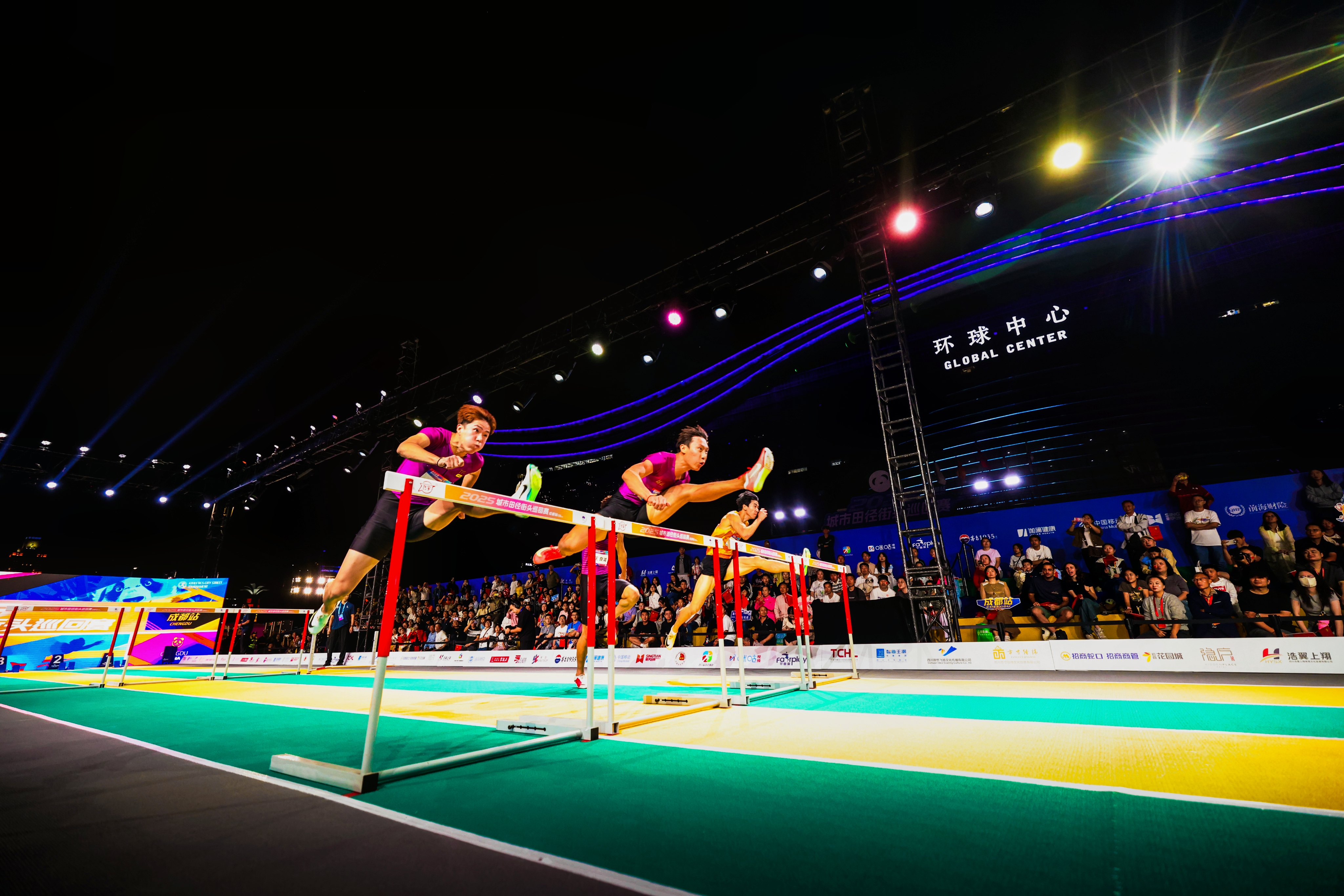 此次成都站赛事还实现四项重要创新:男子跨栏首次走上街头,展现田径与潮流融合的速度;新型环保高密度板材与搭建工艺首次应用,保障双节期间工程品质;国内首次使用黄绿相间赛道,在都市背景下勾勒出专业竞技舞台;演唱会级灯光系统首次引入街头赛事,将赛场打造为开放式舞台,增强视觉张力与观赏性。这些创新从内容、颜值、保障与体验多维度突破,定义了田径“新赛道”,使成都站成为街头体育新地标。