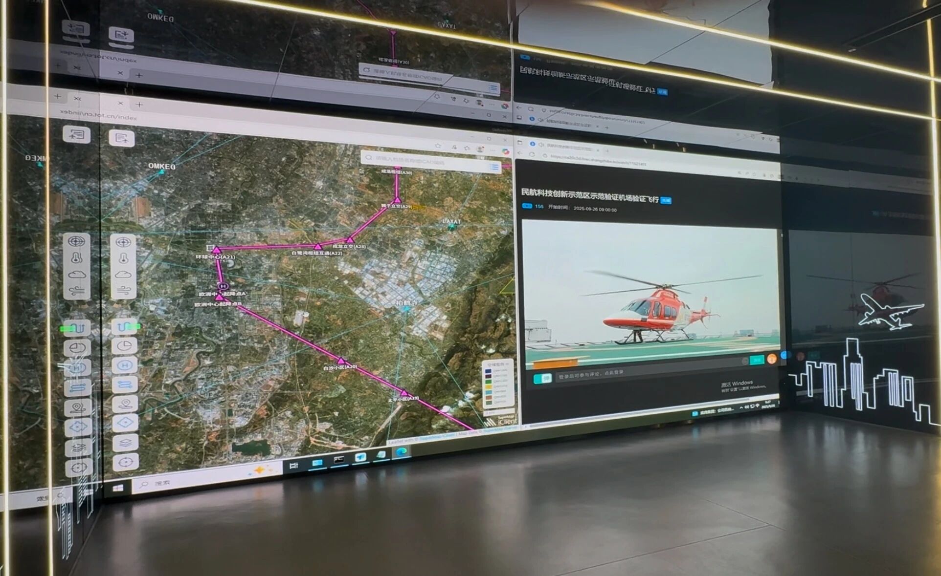 在任务起降点,负责本次验证试飞的民航二所工程技术团队完成了全方位飞行服务保障设备的部署:其航站楼二楼配备了低空飞行服务保障系统、亿飞伴地面站、数字化远程塔台与VHF电台、气象自观测设备;直升机上搭载了便携式北斗多模机载终端和亿飞伴电子飞行包(EFB);起降点还部署了两套通航ADS-B地面站,构建起立体化的飞行保障网络。