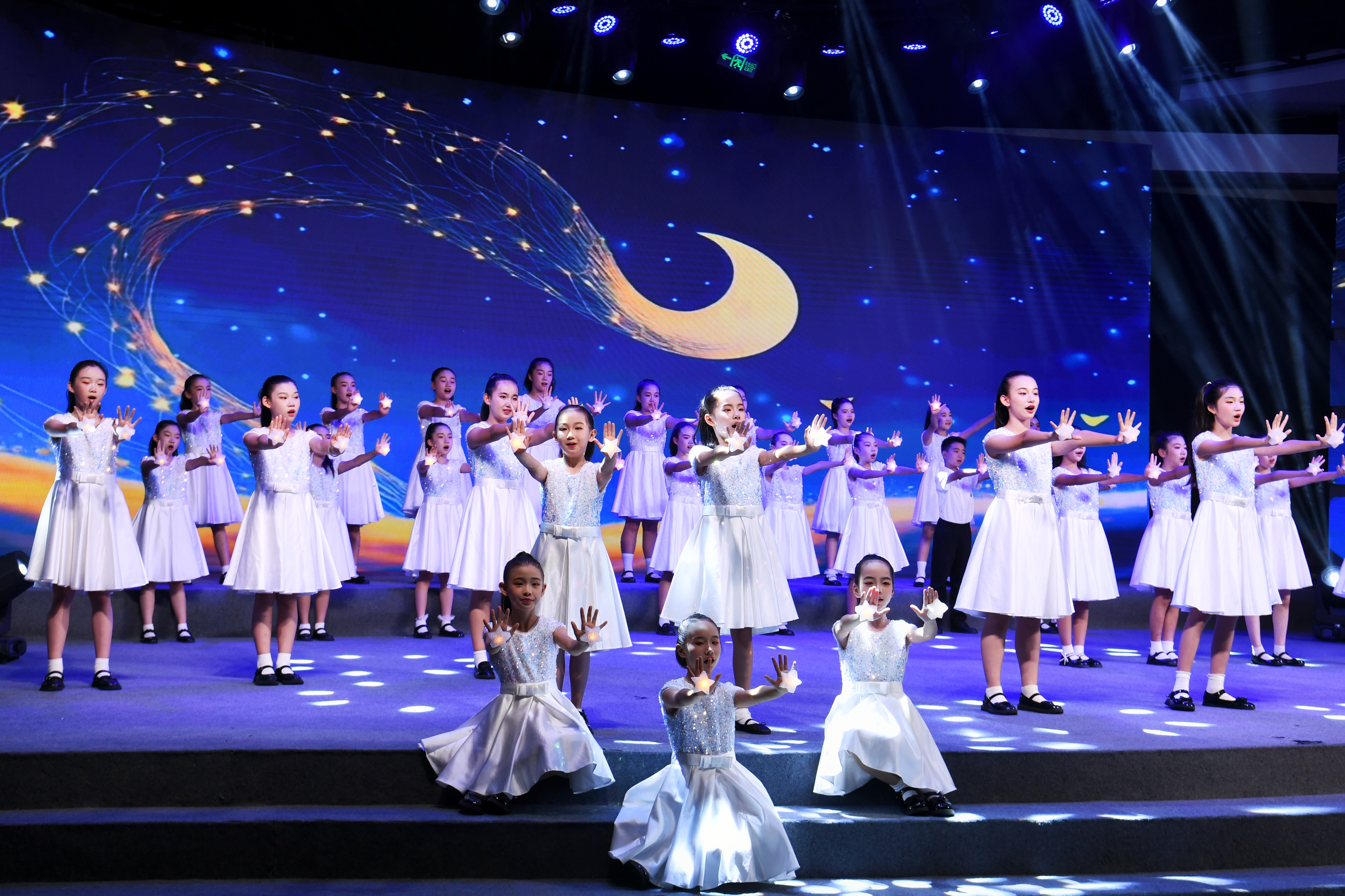 闭幕式现场星光闪耀,国内外知名电影人、相关儿童演员及剧组代表、电影展重要嘉宾和500多名小影迷相继入场,和大小朋友们欢聚一堂,共同回顾了本届电影展的精彩瞬间。儿童节目《小AI同学》《执镜俑》《七卜隆咚锵》引得现场小朋友连连喝彩,大合唱《张开银幕的翅膀》将现场气氛推向高潮。