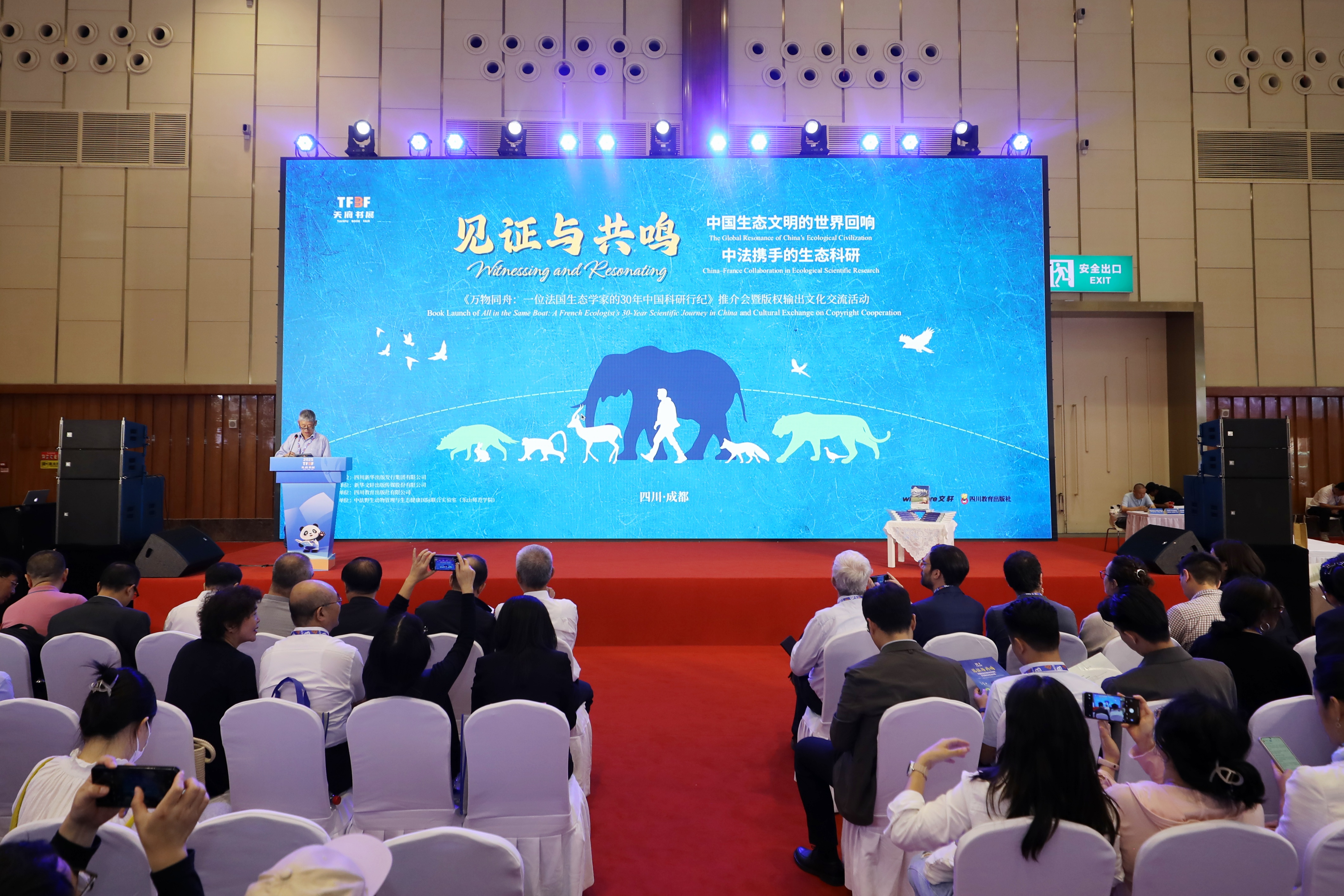 活动现场邀请作者团队成员、中国版协领导、法国领事馆专员、专家学者、出版单位、媒体及科研院校代表共同推介《万物同舟》。新华文轩出版传媒股份有限公司副总编辑、四川教育出版社社长雷华与美国学术出版社、德国赫茨普隆出版社版权代表方签约,将该书英语、德语版权输出,让中法生态科研成果惠及更多地区,让中国生态文明故事传播到更多国家。