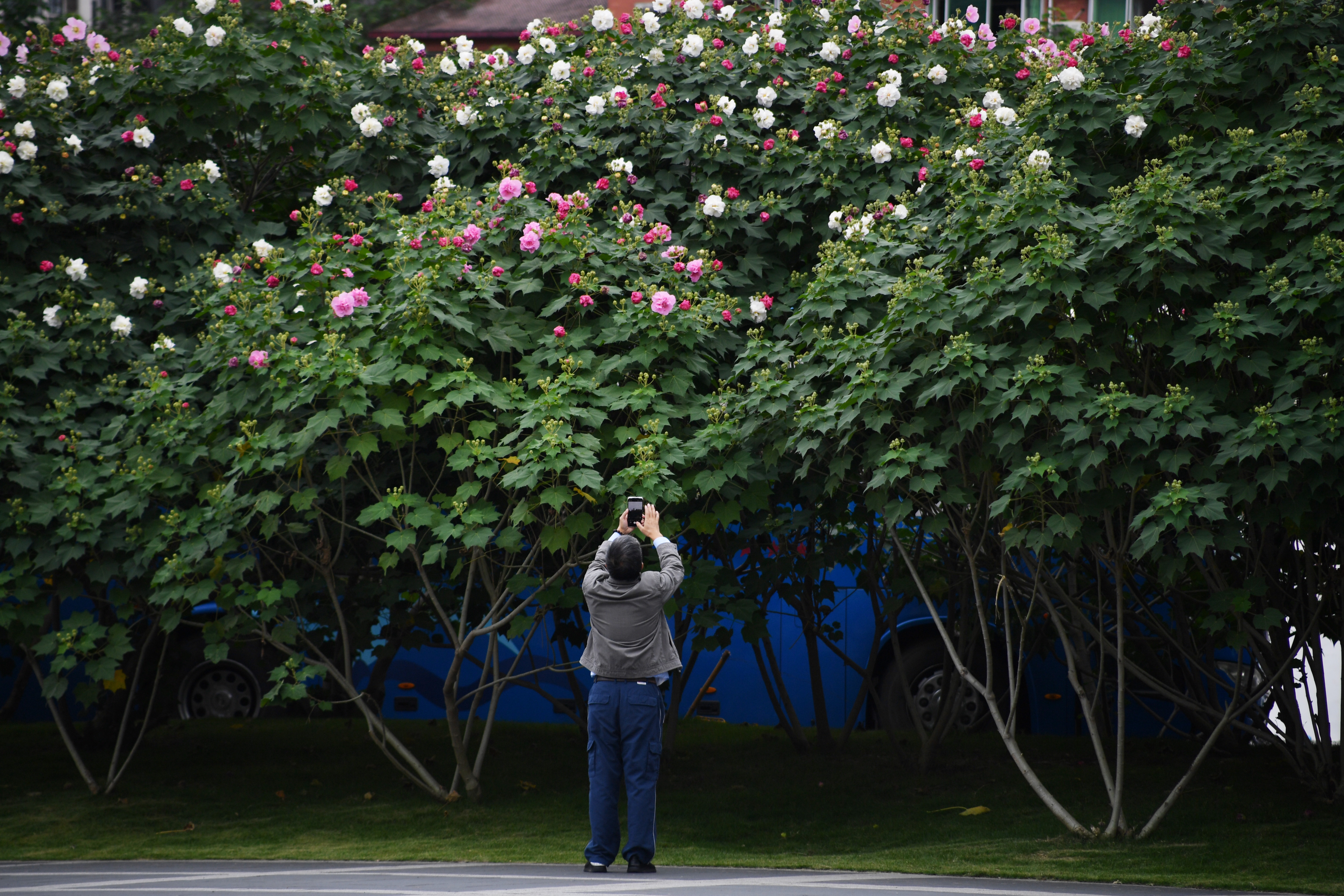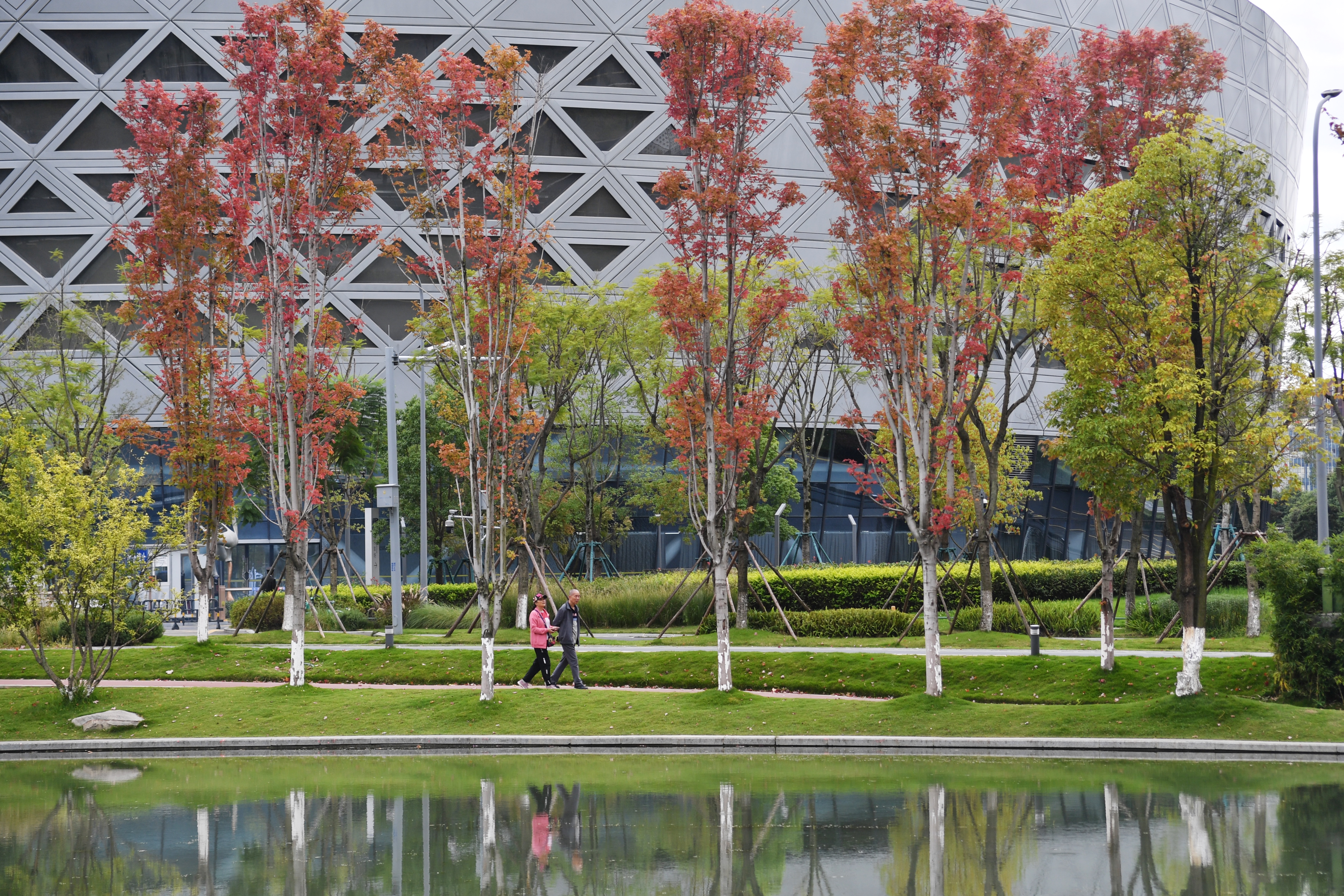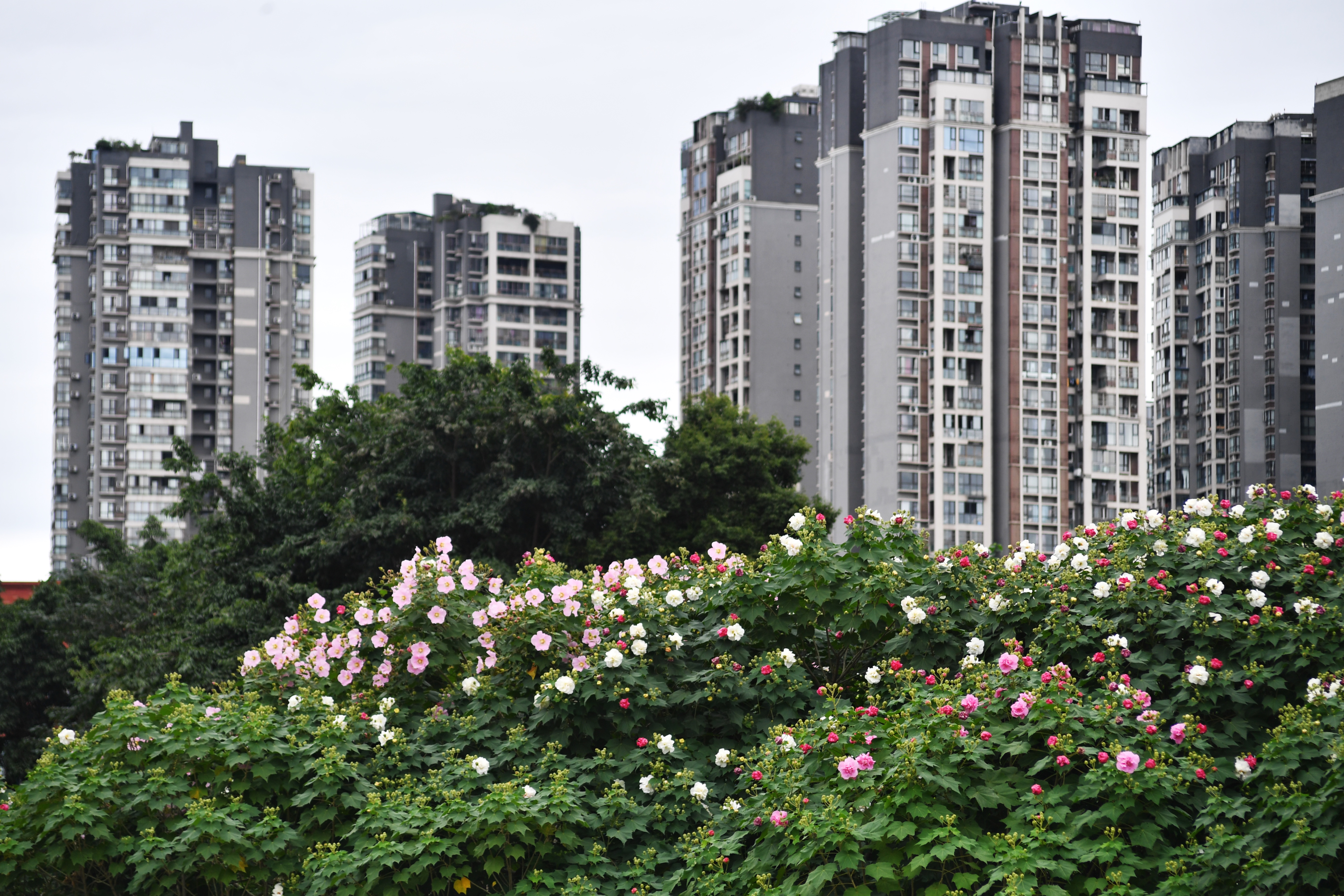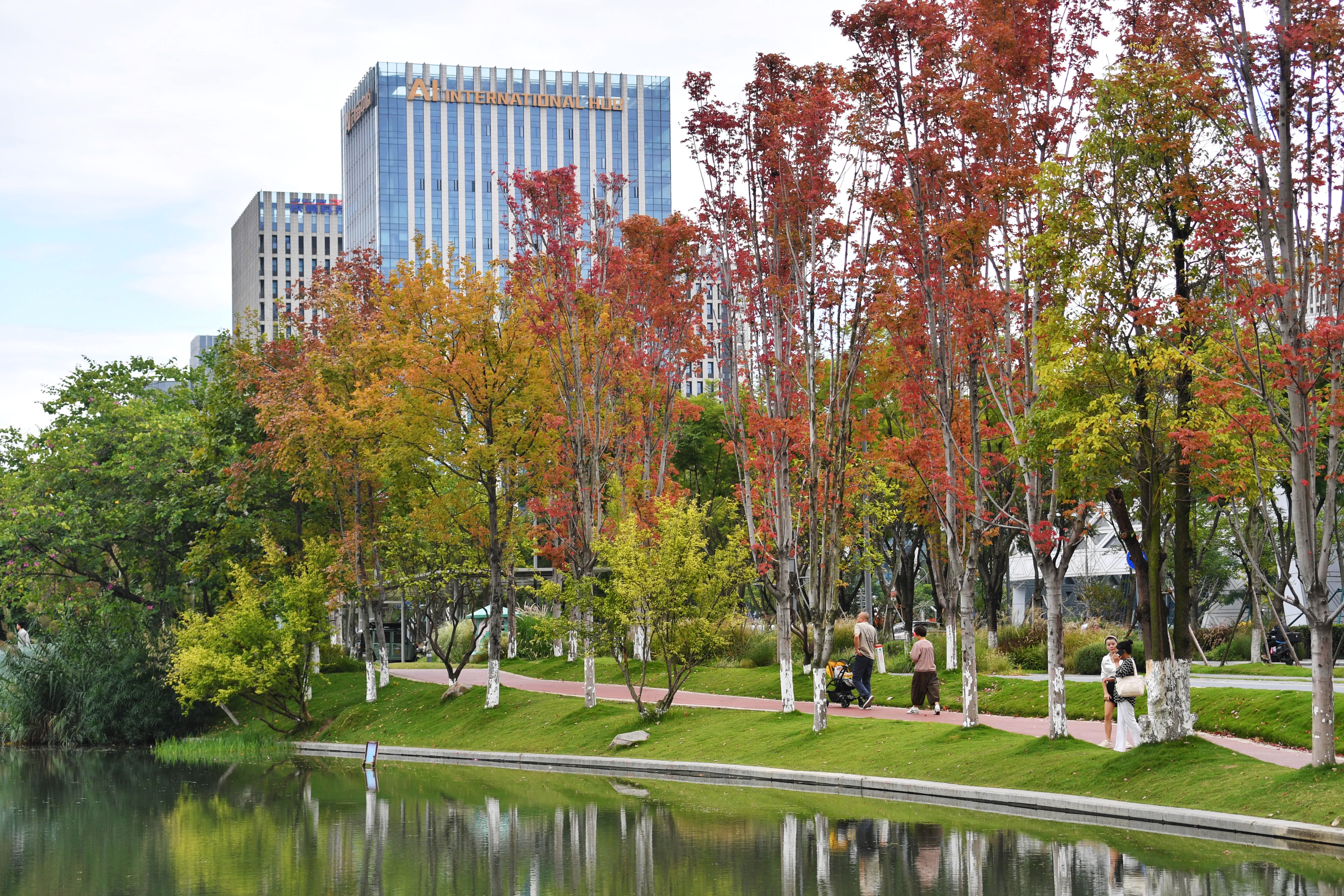 新川之心公园东区也是赏芙蓉的好去处。园内芙蓉树分布集中,花开繁密,与现代化的园区景观交融,展现出颇具特色的成都风貌。不少摄影爱好者专程前来,捕捉芙蓉映日、落叶纷飞的瞬间。
