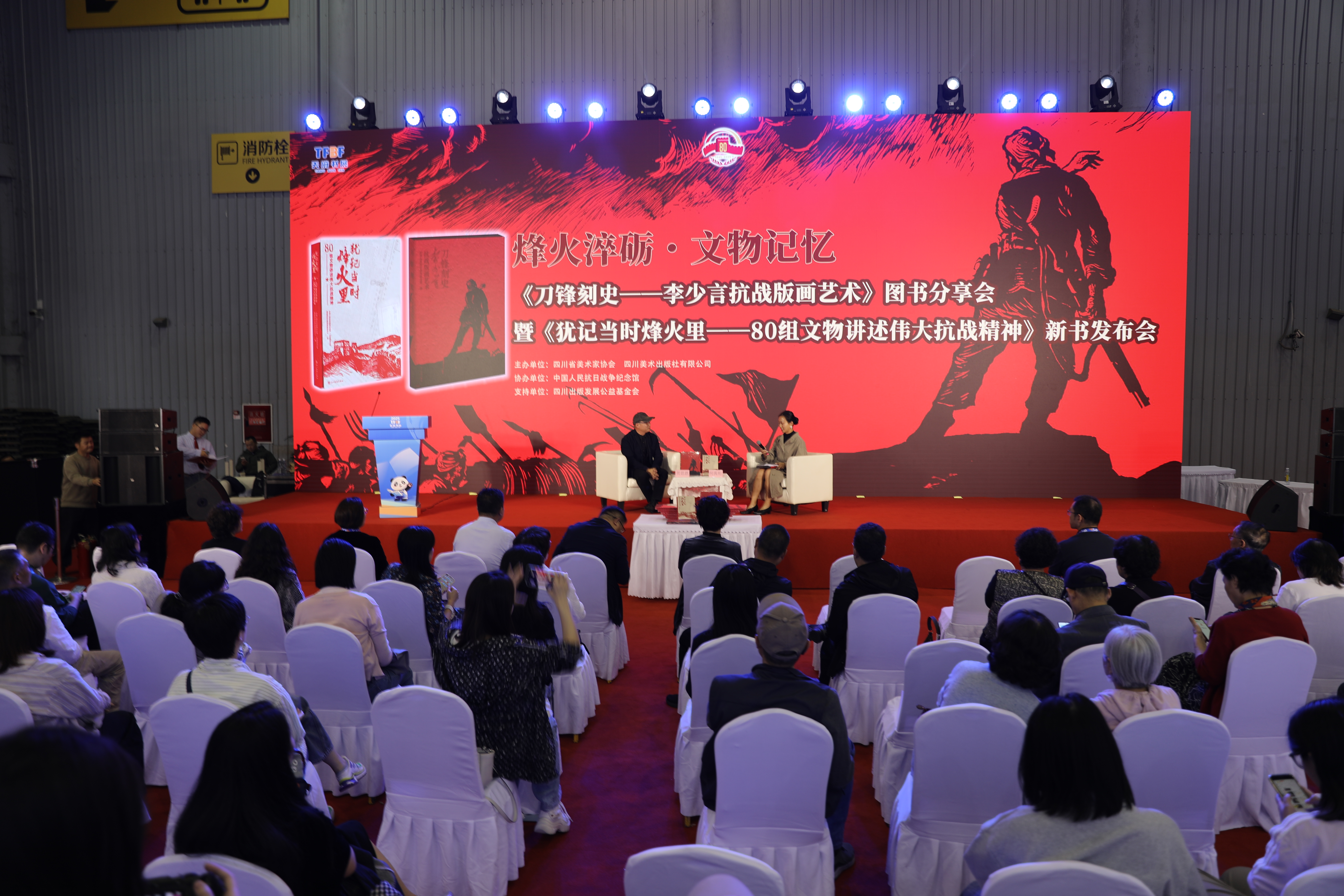 10月17日,“烽火淬砺・文物记忆:《刀锋刻史——李少言抗战版画艺术》(以下简称《刀锋刻史》)图书分享会暨《犹记当时烽火里——80组文物讲述伟大抗战精神》(以下简称《犹记当时烽火里》)新书发布会”在成都高新区世纪城新国际会展中心天府书展主展场举行。