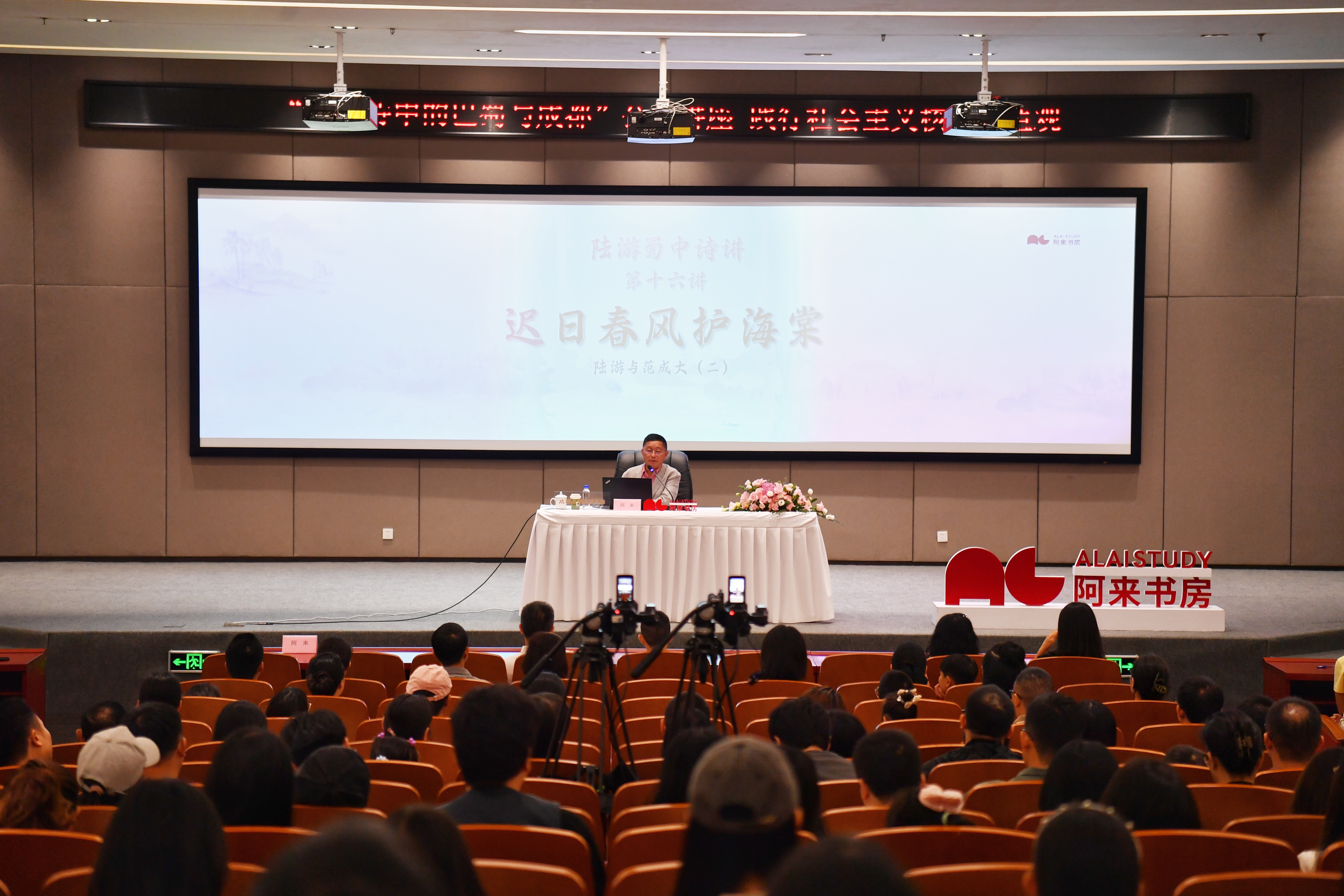 活动现场,著名作家、中国作家协会副主席、四川省作家协会主席阿来以“迟日春风护海棠”为主题,带领观众在诗与史的交织中,重返南宋时期的诗意成都,感受千年前的烟火与风雅。