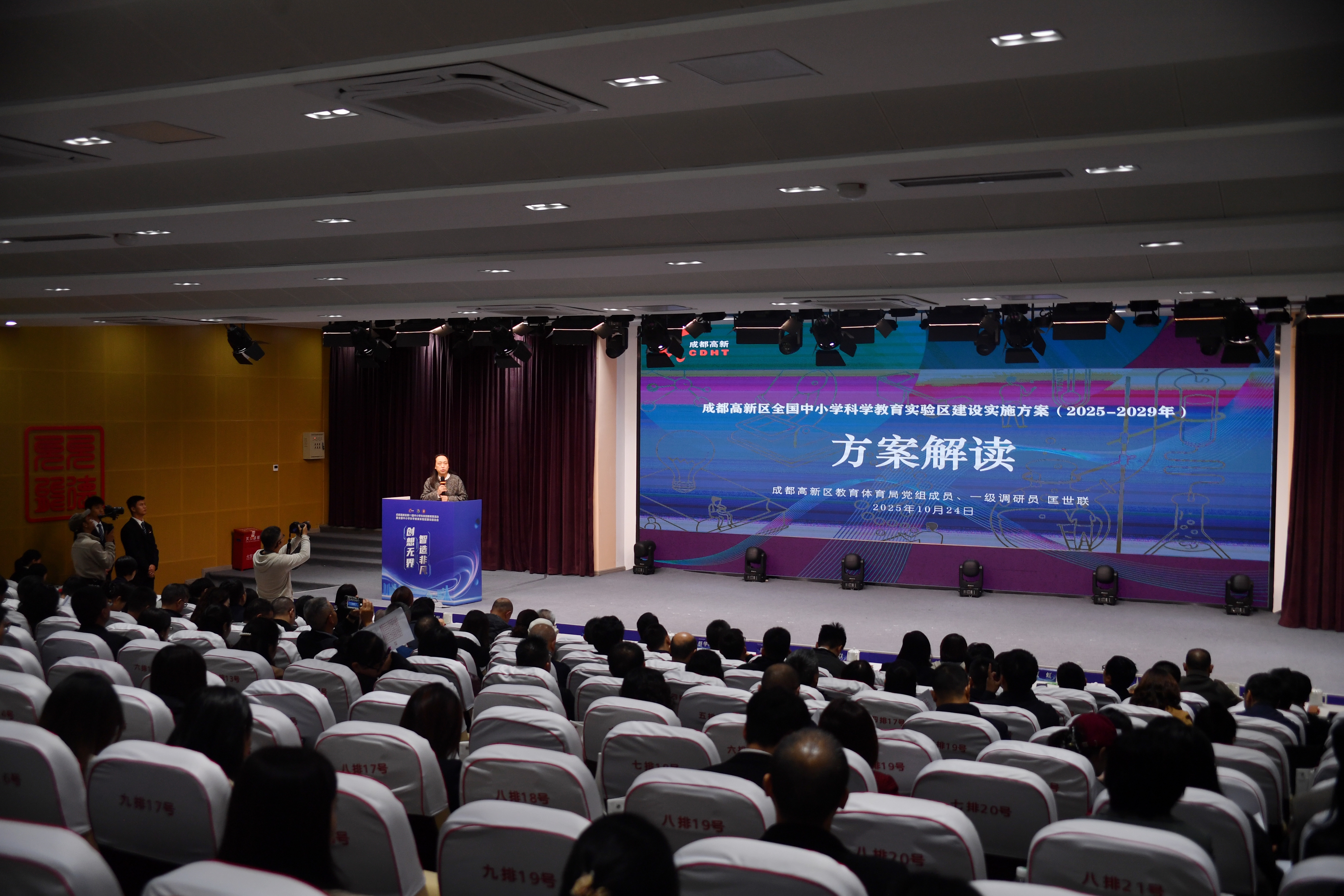 在同期举行的全国中小学科学教育实验区建设启动会上,成都高新区教育体育局相关负责人详细解读了《成都高新区全国中小学科学教育实验区建设实施方案(2025-2029年)》,明确“一十百千”工程等重点任务。