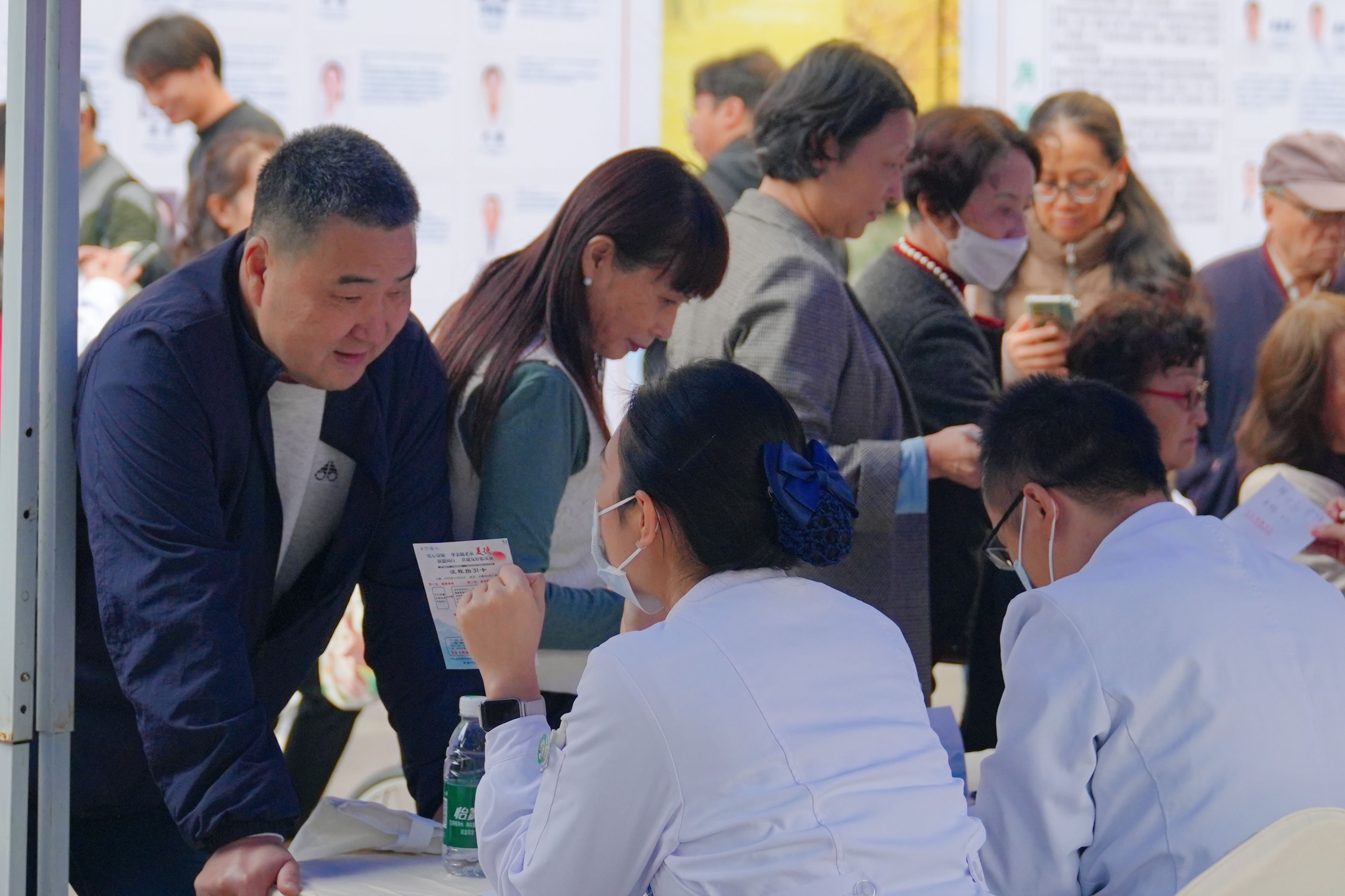 当天活动吸引了大量居民前来咨询问诊。来自内科、外科、康复科、中医科等20余个科室的60余名医务人员,现场为居民提供包括测量血压、血糖检测、慢病管理、康复指导、中医理疗等一系列服务。义诊区前人头攒动,医生们耐心地为老年人检查身体、分析病情,详细解答他们在生活中遇到的健康困惑,累计服务居民千余人次。