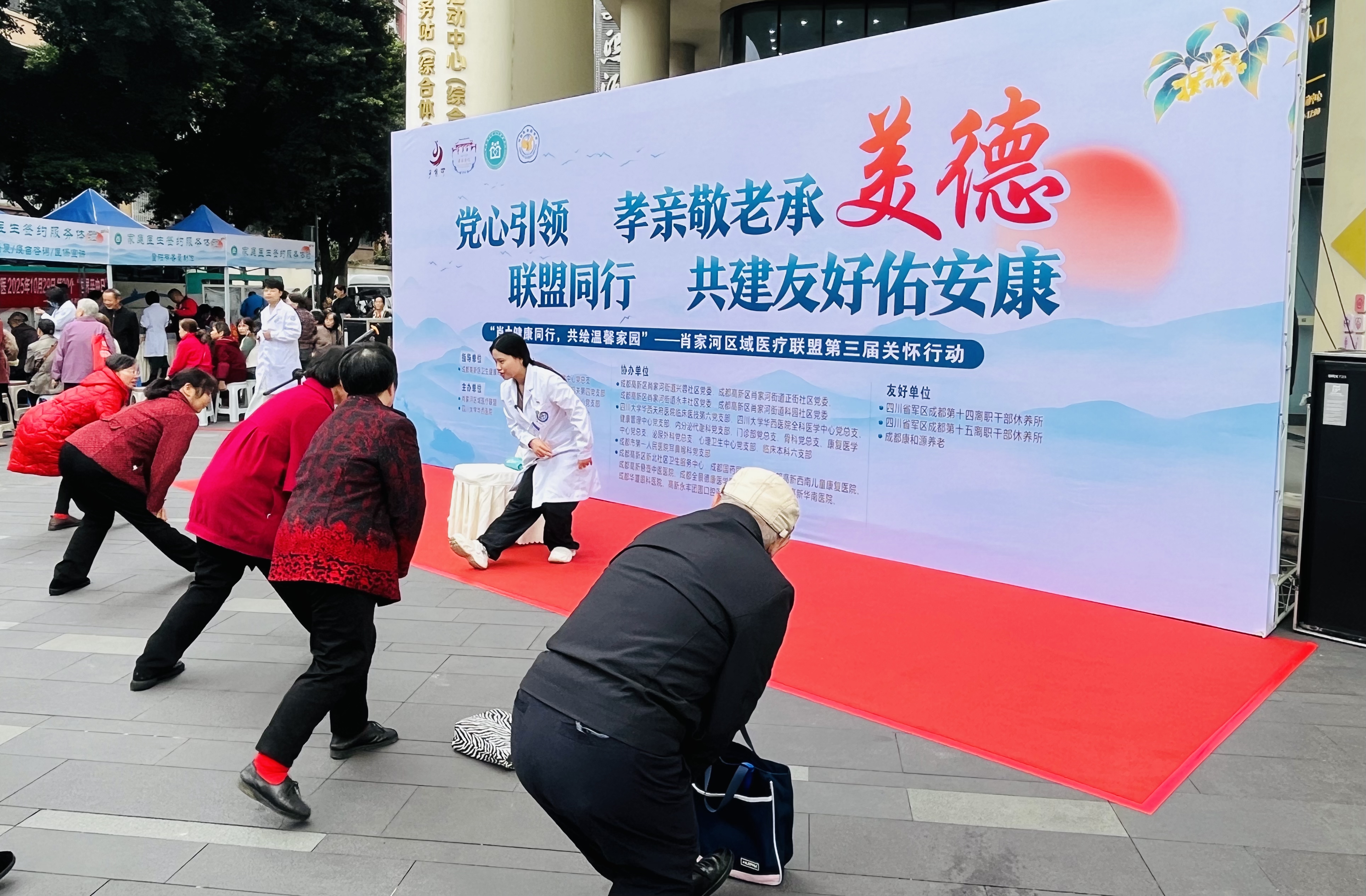 为弘扬中华民族尊老、敬老、爱老、助老的传统美德,10月28日,由成都高新区卫生健康局指导,成都高新区肖家河区域医疗联盟、四川大学华西医院主办的“肖+健康同行,共绘温馨家园”重阳节公益健康活动,在成都高新区兴蓉社区举行。活动将专业的医疗服务送到居民身边,为筑牢社区健康防线注入温暖力量。